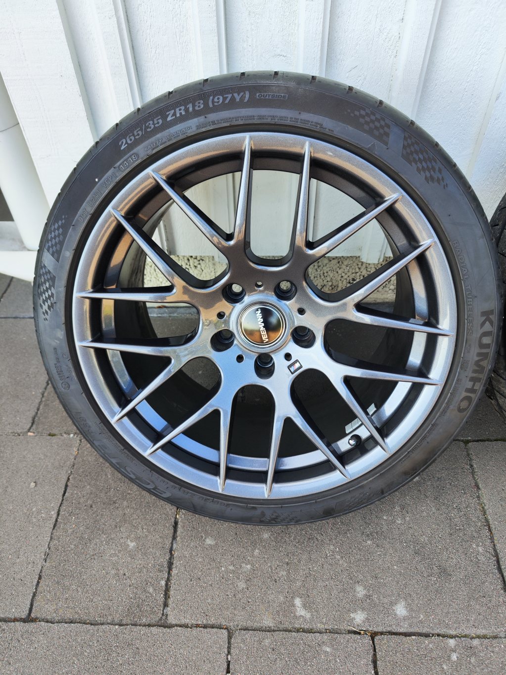Har en uppsättning på 4st veemann 359 9,5x18 et33 5/120 perfekt för att ha som ban hjul på tex m3 e46. 2 st fälgar har bra däck kumho ps91 och 2 är utan däck. Och 2 fälgar har några små märken men annars bra skick. Pris 4500:- fälgarna finns i Halmstad Tel 0706961908 Mvh Joakim Lindström