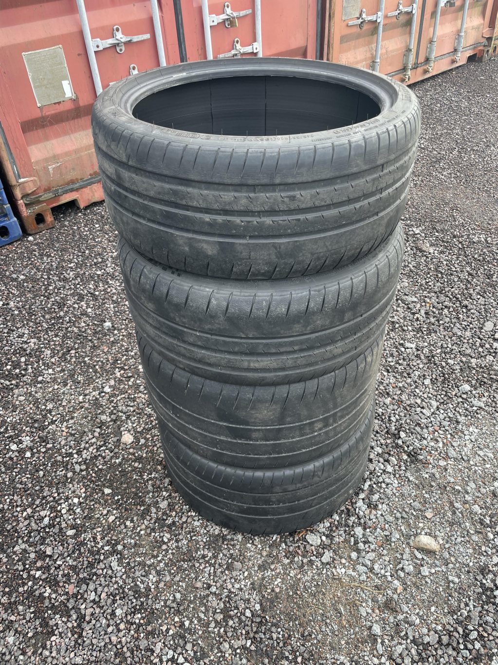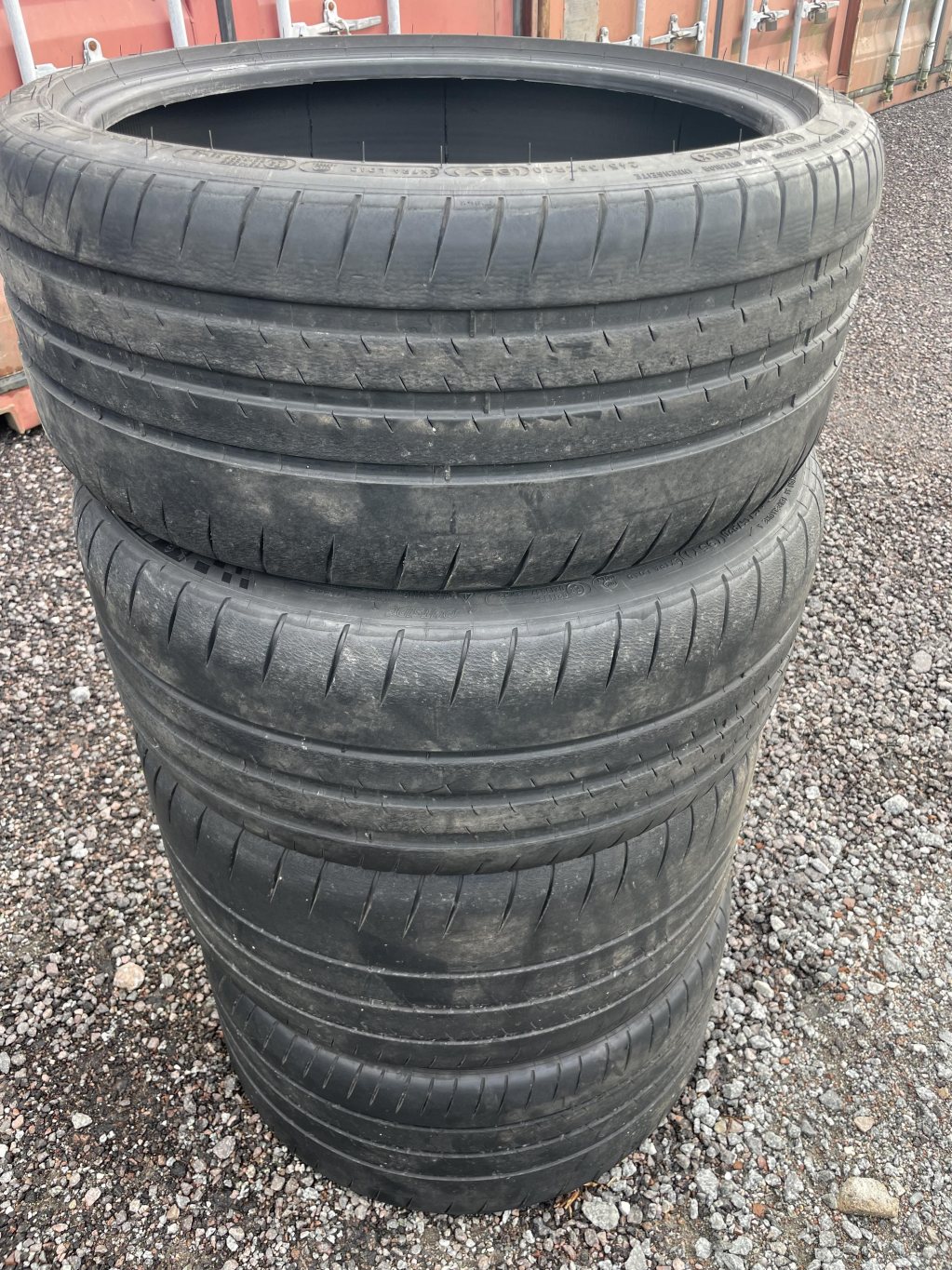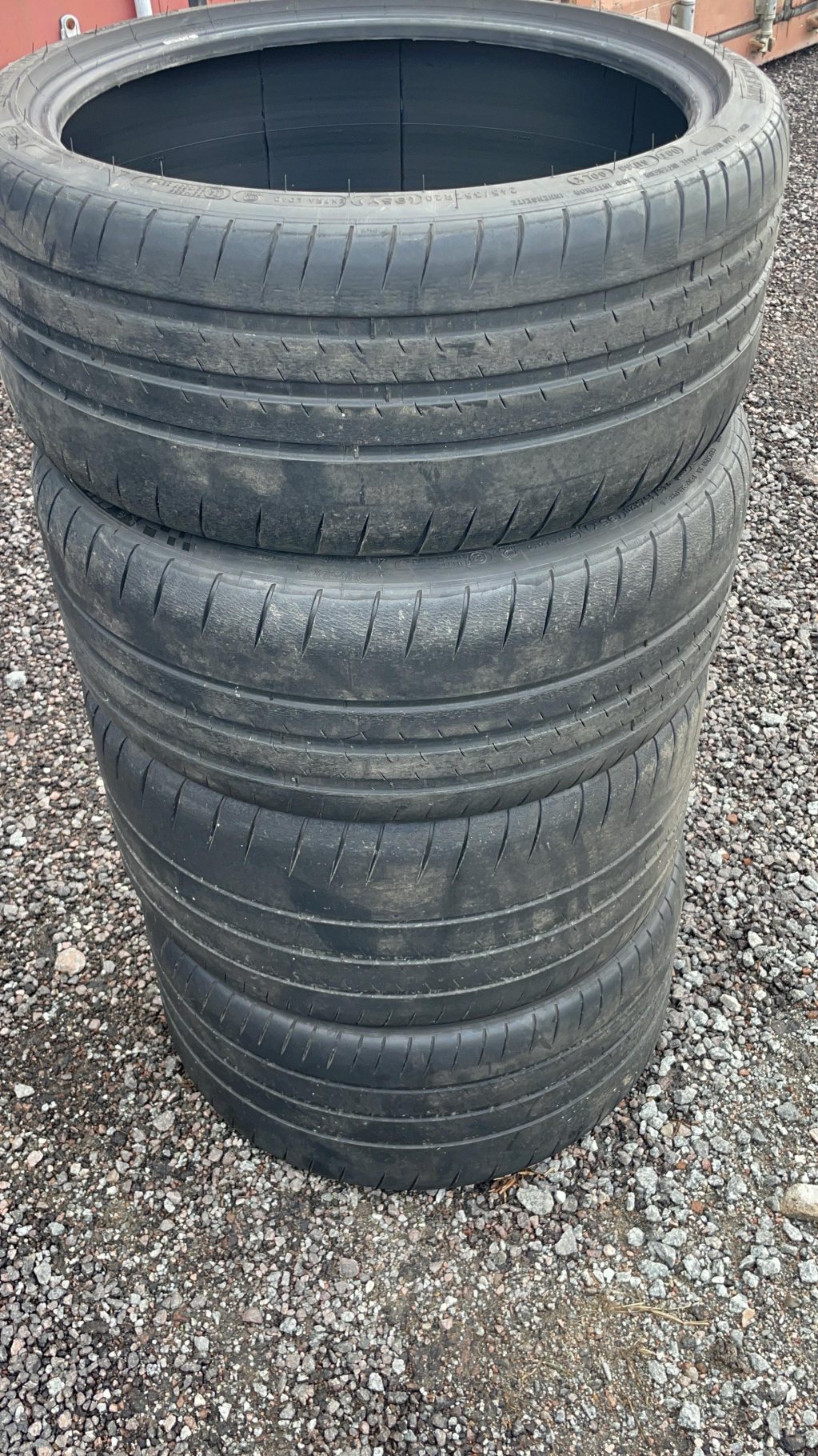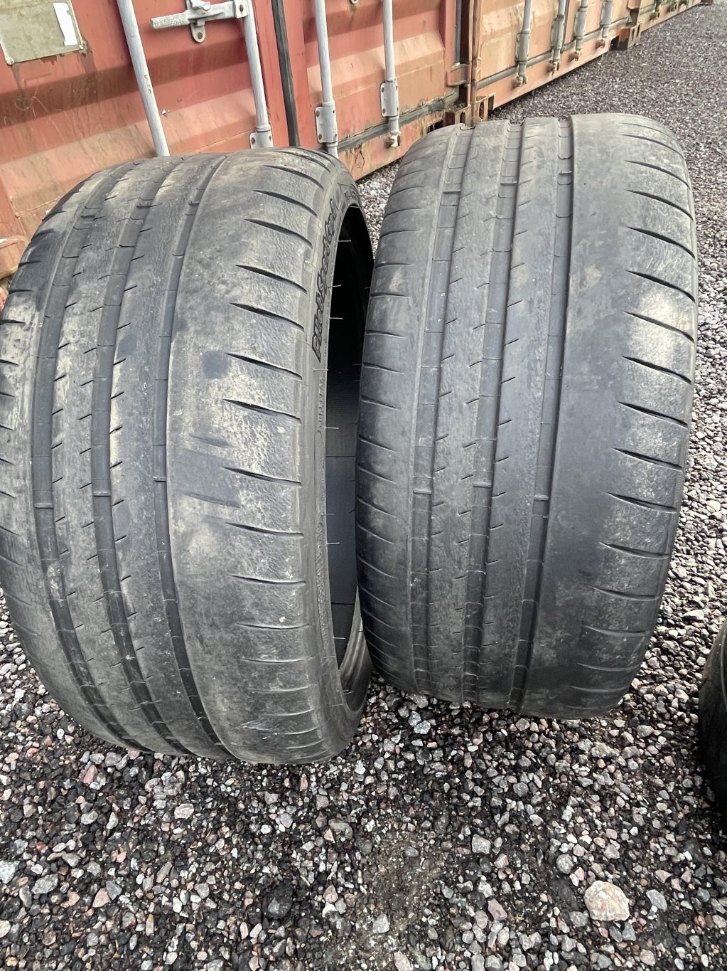 Hej, Säljer ett sett Michelin Pilot Sport Cup 2 däck som kommer från min Porsche 718 Cayman GT4. Är 2 stycken 245x35 20 tum och 2 stycken 295x30 20 tum. Där framdäcken (245) är i mycket gott skick, skulle säga ca 4+mm över hela slitagebanan. Medans bakdäcken (295) är något mer slitna och ca 3mm över hela slitagebanan. Däcken tillverkade under 2021 och är N1 klassade (Porsche godkända). Finns i Enköping och skickas helst inte, men skickas däcken så skickas dem ENBART med PostNord och köparen står för frakten. SÅLDA!