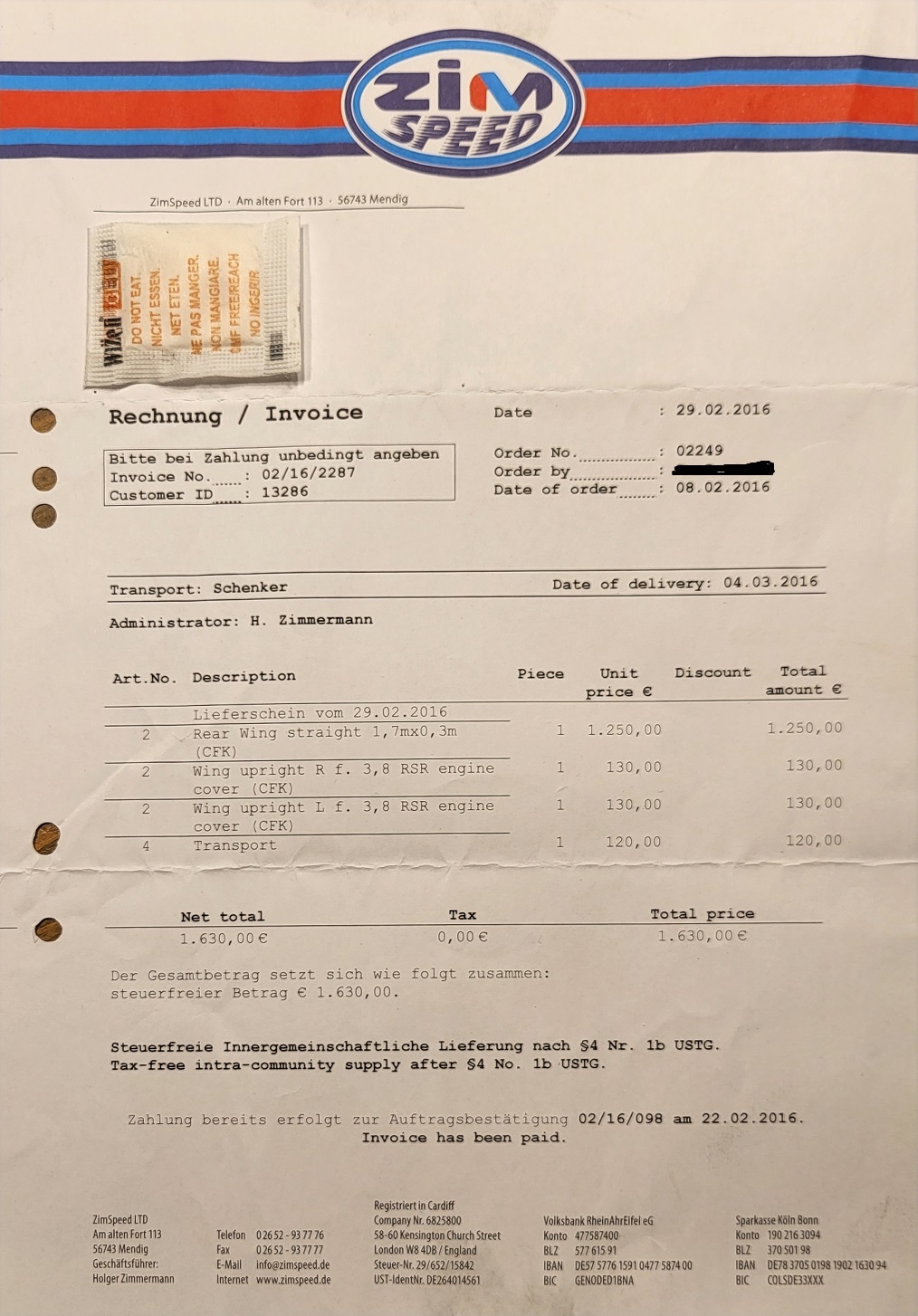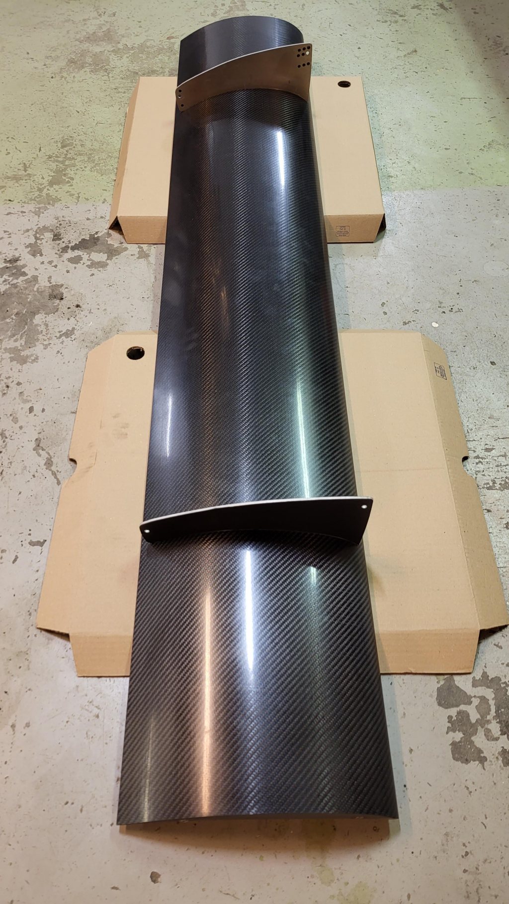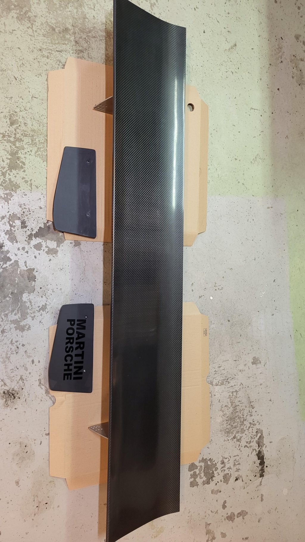 Har en mycket fin kolfibervinge från tyska ZimSpeed till salu. Från början gjord för Porsche 993 3.8 RSR, men passar såklart på de flesta bilarna, med egna fästen. Avstånd mellan fästplåtarna är 107,5 cm. Följer med end-plates och kolfiberfästena som satt mellan motorluckan och vingen på 993:an. Nypris 2016: 1630 EUR (originalkvitto finns) Pris: 10.000 kr - SÅLD!