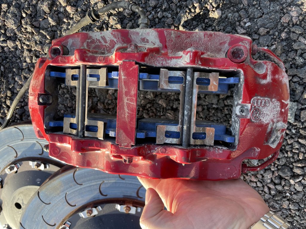 Hej, Säljer ett big brake kit till Volkswagen, Audi, Skoda och Seat baserat på MQB / mk7 plattformen. Suttit på en VW Golf GTi Clubsport mk7 2017. Röda Audi R8 bromsok och adapterar för att passa på mer eller mindre alla MQB baserrade bilar så som S3, Leon, Ateca, Formentor, Passat, Arteon, Golf, TT, TTS, T-roc, Q3, SQ2, Octavia, Superb och många andra. Kommer med Endles ME22 bromsbelägg som bara gått 1/2 bandag. Bromsskivorna från Reyland är 380mm och har gått 2 bandagar och ca 500mil på gata. Liten skada i färgen på ena bromsoket, se bild. Bromssköldar som är klippta för att passa på alla MQB följer med oxå. Så även bromsslangar. Komplett kit, bara att montera och börja köra hårt på gata eller racerbanorna 2024. Finns i Enköping och skickas helst inte men ska de skickas så betalar köparen för frakten och då skickas de med PostNord. REJSA pris: SÅLD!