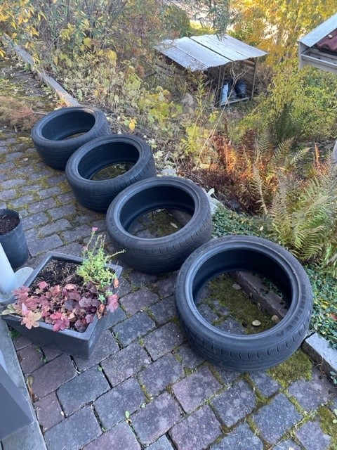 Tanken var att ha de på min Mitsubishi Evo 9. Vad jag minns har jag aldrig monterat de på fälg, helt nya. Köpte de 2019 eller 2020 osäker. Förvarar de i kall, mörk källare. Pris 2000 :-