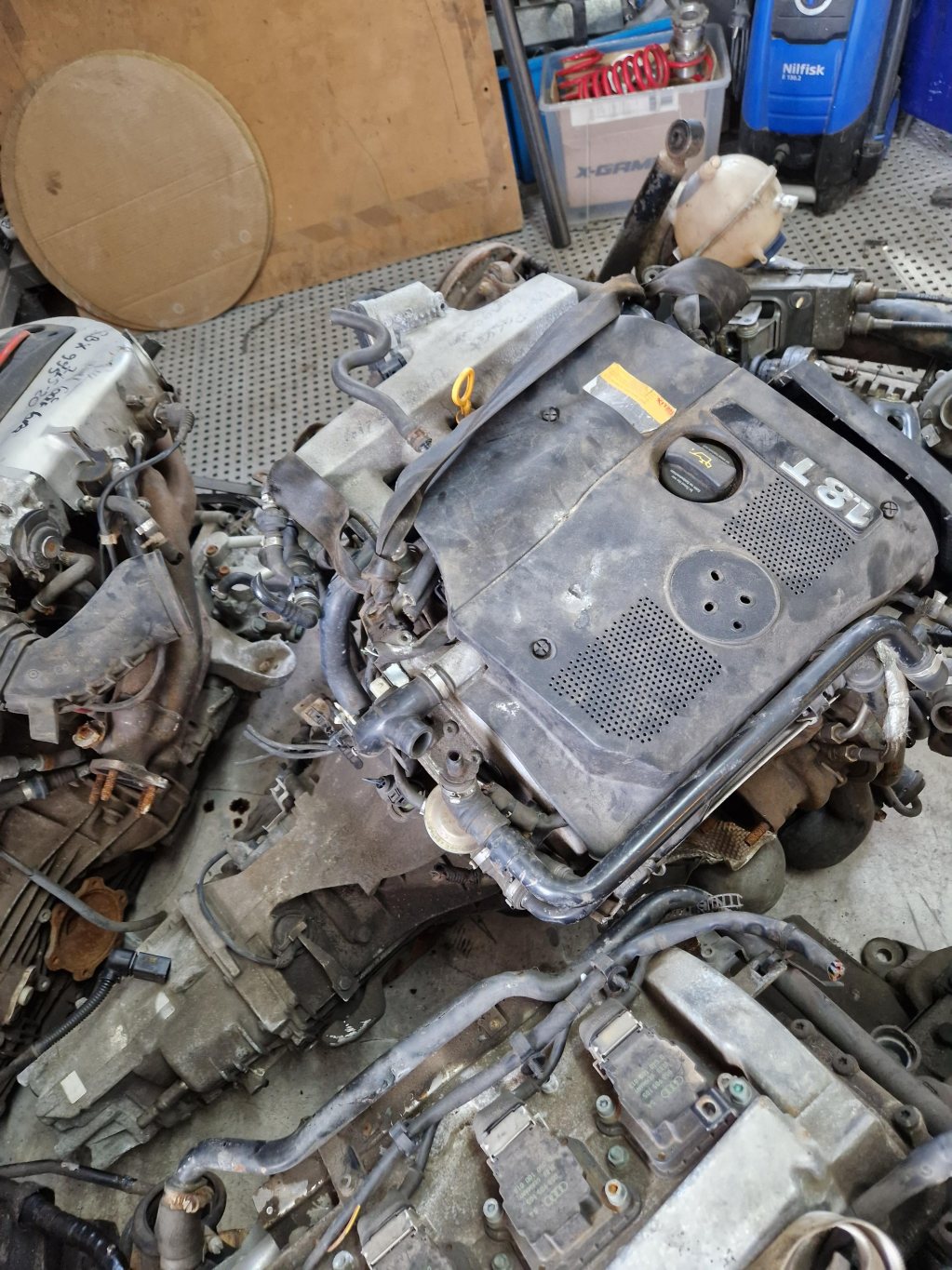 Komplett motor och drivlina inkl ecu. Inget kablage tyvärr. Från en Audi S3 1.8t 20v 2003 17000mil 6vxl 02M låda Haldex gen1 Bakvagn Kardan Spakställ Får jag 18k? SÅLD!! Har även två st 1.8t 20v längsmonterade inkl lådor. Stora bigport topparna på dessa. Och en VR5 maskin med låda. 8k inkl låda?