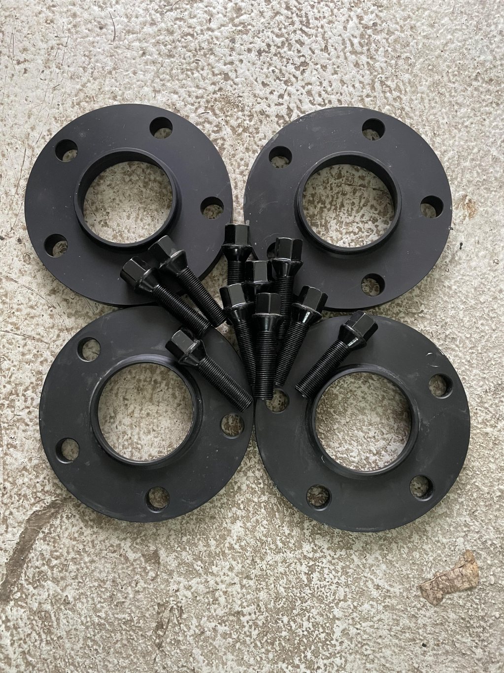 Använda en sommar på min M4 med 19" originalfälgar. 2st. 15mm 2st.12mm 10st förlängda svarta bultar. 72.6mm nav. Pris: 700kr [/img]