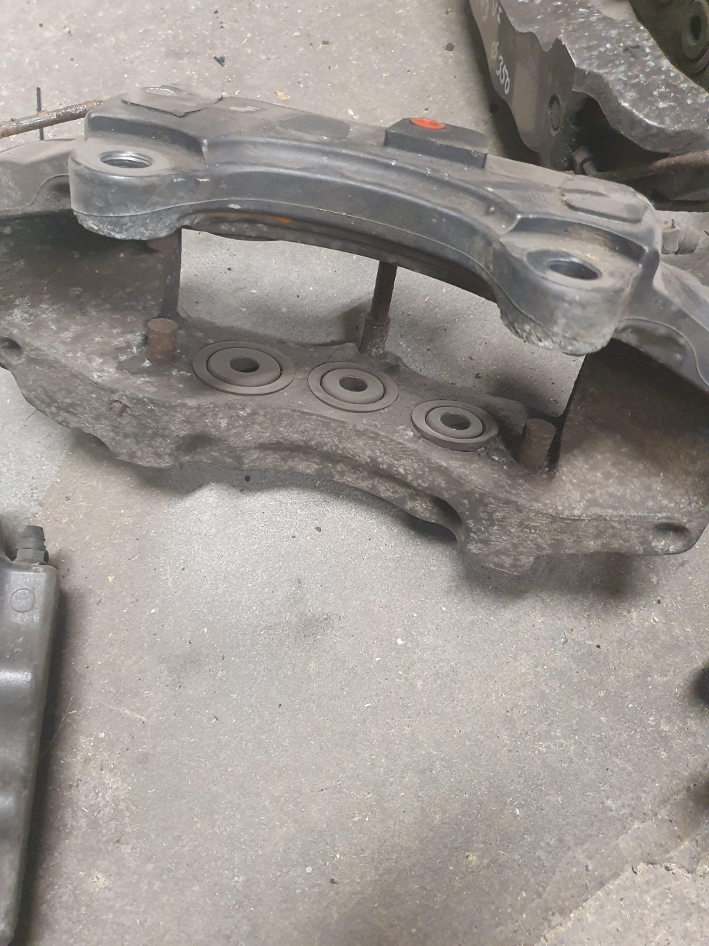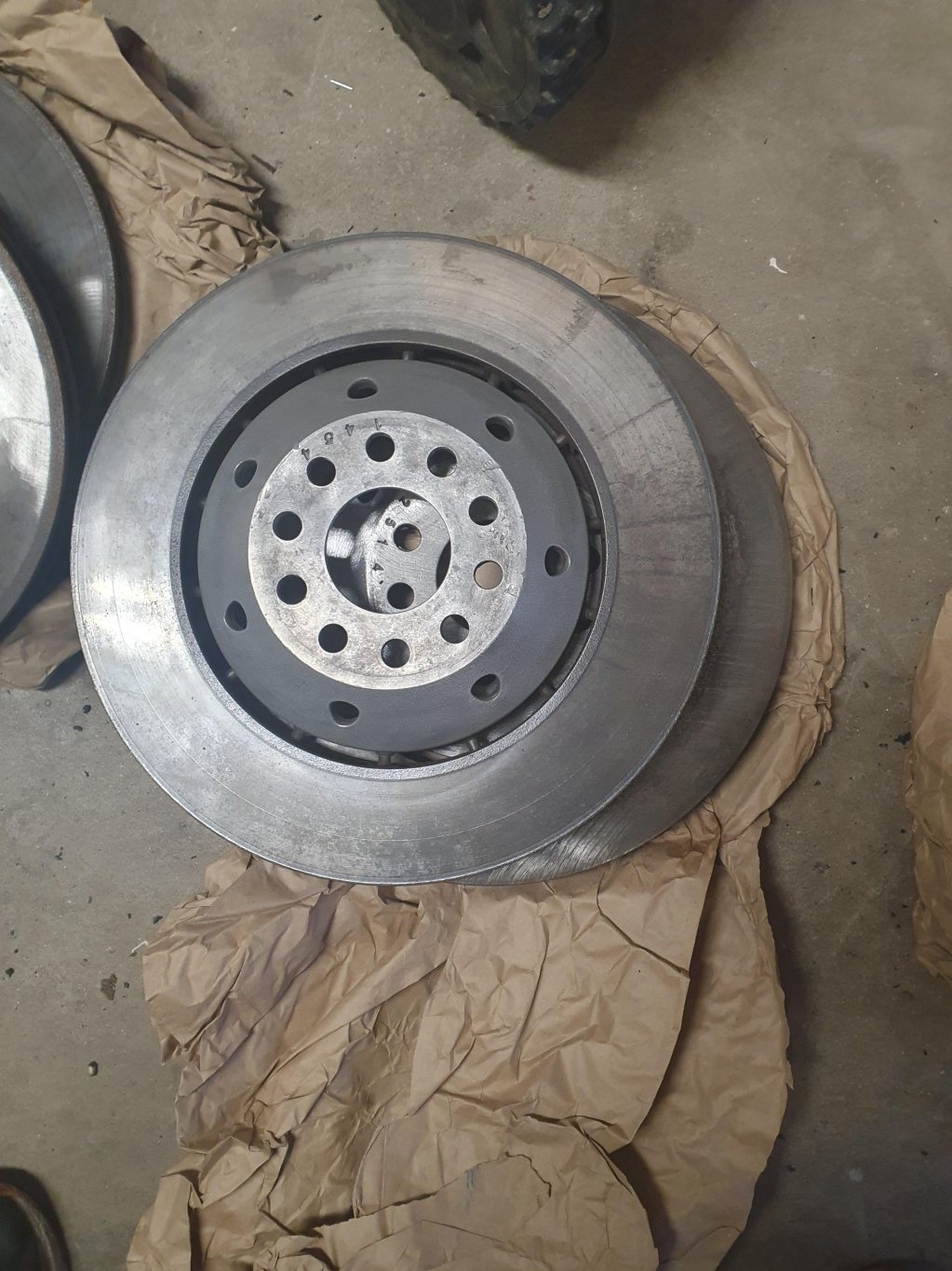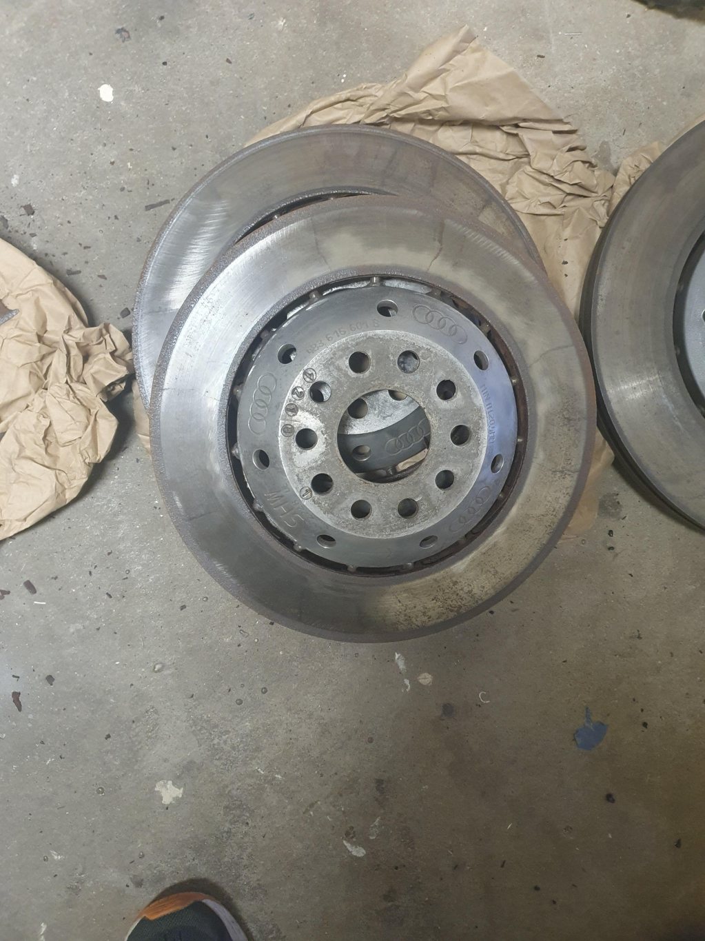 Bromsok: Brembo 18Z, 6 kolvs ok (Cayenne, Touareg, Q7 etc) fram. 345x34 skivor om jag inte minns fel. Brembo 4 kolvs ok bak (Cayenne, Touareg, Q7 etc) utan elektrisk P-broms för 330mm skivor. Brukar se dessa gå för 2500-3000/ok fram och 1500-2000/ok bak. 4500 för 18Z 3000 för bakoken Paketpris 6500:- (Ett ok ligger tyvärr i Norrland hos föräldrarna, kommer ta hem det vid jul) Skivor: 365x34 Audi RS4 B8 om jag inte missminner mig. Flytande skivor med alu centrum. Motsvarande nya kostar 4500-5000kr STYCK. 330x22 Audi RS4 B8 här med, alu centrum. Nypris 4-4500 STYCK! Dessa är OEM skivor allihop, bättre begagnade. Jag har mätt skivorna till 33.5mm fram ca och 21.7mm bak ca. Så gott om material kvar att nöta på! Nypris 16 000+, jag vill ha tillbaka vad jag gav som var 3500:- Big pack pris (ok och skivor) 9000:-