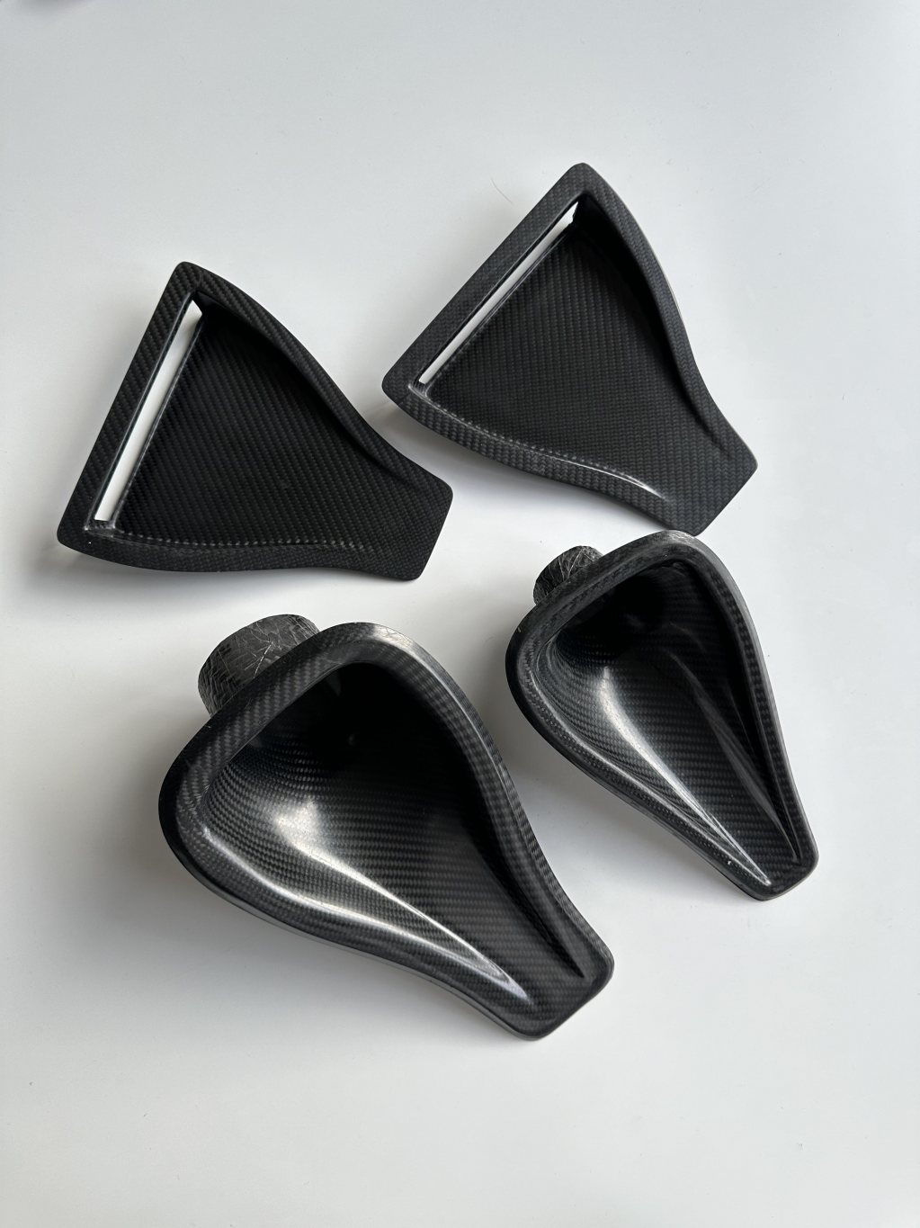 Har några Naca luftintag i kolfiber till övers. dessa är i otroligt lätta, kolfiber rakt igenom och utan klarlack, så endast polerad epoxi. Dom två utan slanganslutning är redan sålda.