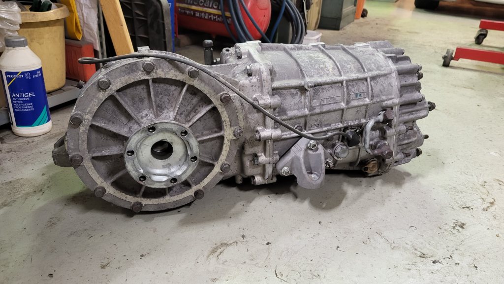 Har en fin Graziano M139 transaxel-låda som kommer från en Maserati QuattroPorte 4,2 V8 2006 med 10.900 mil. Detta är samma typ av växellåda som Ferrari använder (F430), fast de har ett annat hus för mitt-monterad motor. QuattroPorte fanns bara med "DuoSelect" (F1 på Ferarrispråk) som är en el-hydraulisk styrning som sköter växlingarna, antingen manuellt med ratt-paddlar eller som en automat. Jag har köpt ett nytt växel-förar hus (från Maserati GT/Spyder som har liknande låda och fanns som manuell), så att den blir manuell för wire-reglage till spak. Lådan är kraftig och ska klara höga moment, stort kronhjul/pinjong och har en ramp-lamell diffbroms. Låg ingående axel med utgående medbringare ovanför, vilket möjliggör lågt montage (och tyngdpunkt). Intern oljepump med anslutningar för extern kylning (byglat standard med det korta röret mellan banjo-kopplingarna på sidan). Det följer även med tillhörande drivaxlar till QP och flänsen mot "torque-tuben" + splines-hylsan som möter upp mot ingående axeln med en bit av axeln som går mot kopplingen. Även all DuoSelect utrustning som sitter på lådan som standard (hydraulpump, ventilpaket, givare, etc) följer med. För utväxlingar och hastighetsgraf, se nedan. Vikt på lådan är 70kg. Denna lådan passar nog ypperligt till ett race-bygge med motorn fram, särskilt med en relativt lågvarvig motor (typ LS V8) då toppfart på sexan blir ca 250km/h. Växellådan framför diffen vilket ger bra med plats för stor diffusor. Pris: 28.000 kr SÅLD