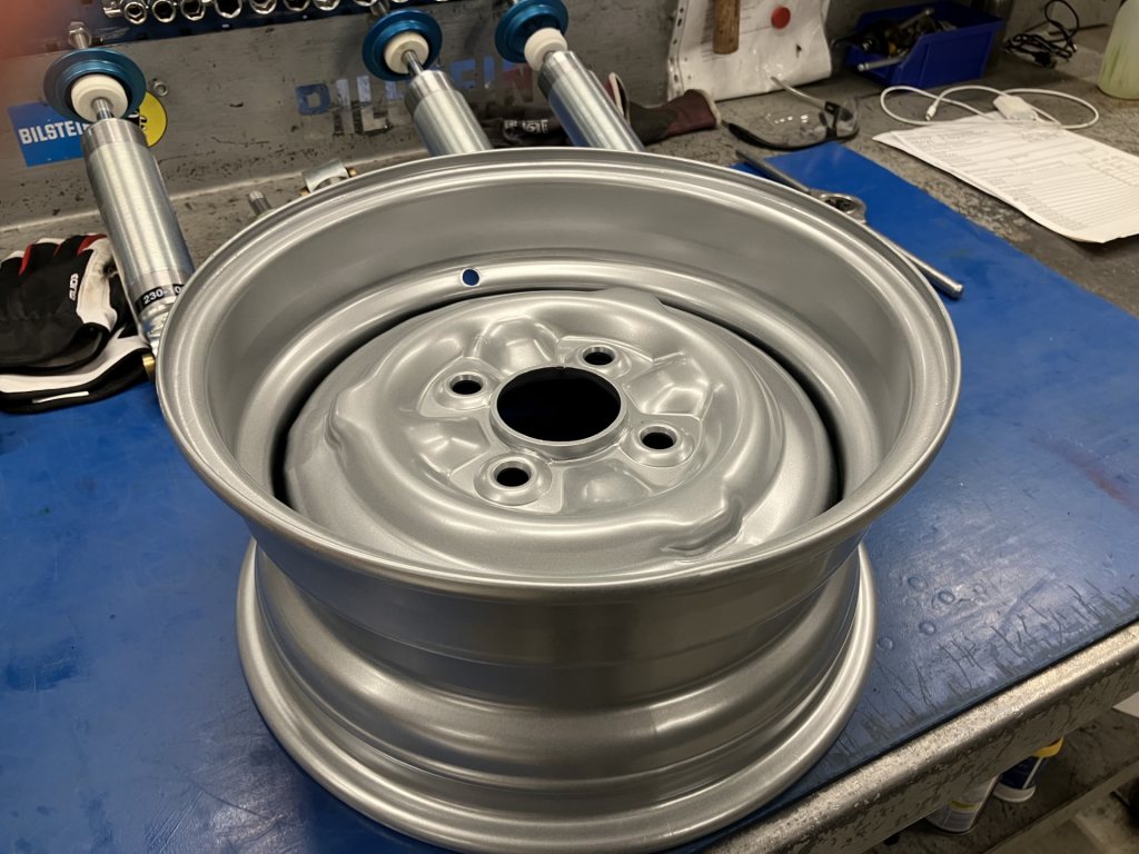 Nya fälgarna kom från England idag, 6x13" med samma utseende som Lotus Cortina.