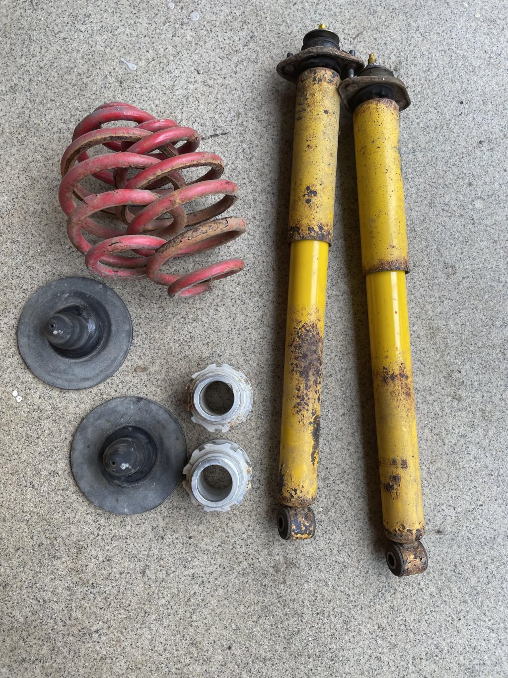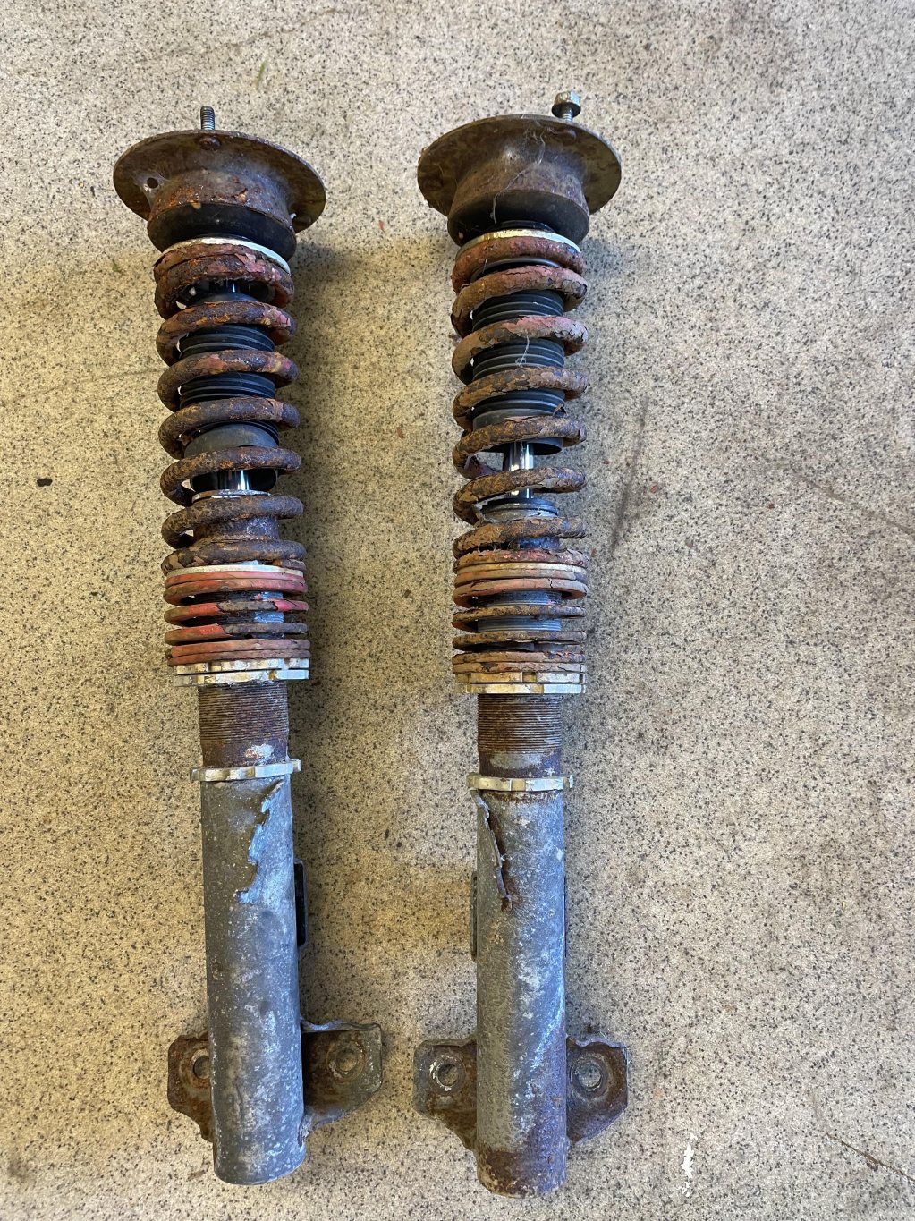 Ett kit med sänkfjädrar & TA Technix stötdämpare bak & coiloverben till E36 compact. Bakpryttlarna passar även E30. Jag gissar att frambenen passar även E30 med spindlar från en E36 compact.