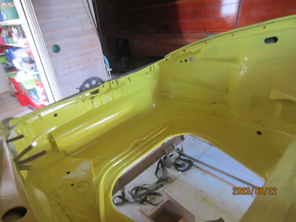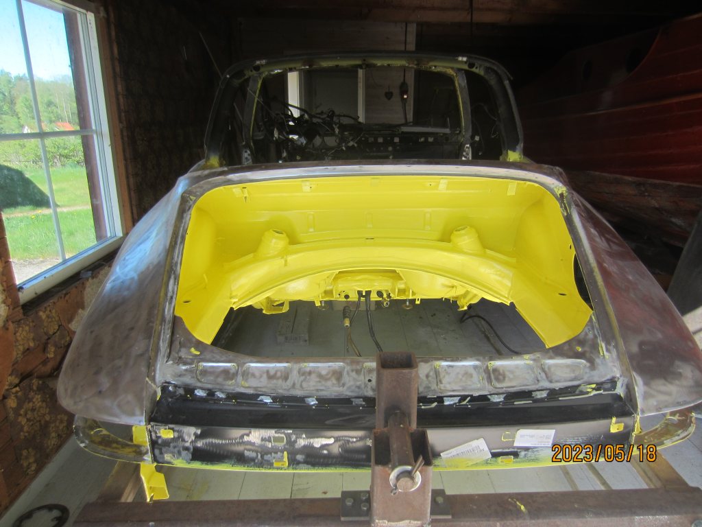 Hej! Säljer här en helrenoverad kaross Porsche 911 T Targa 1975. Bilen har breddade bakskärmar som Carrera. Kaross och allt annat är i stort sett komplett enligt PET, men en hel del småsaker vill man kanske ersätta med nytt. Epoxygrundat på de ställen där lackerare senare har svårt att komma åt. Drivpaket (motor) säljes separat. Motorn är inte komplett men betydande delar att bygga upp en Carrera RS 1973 finns. Exempelvis motorblock samt MFI-pump med rätt angivna serienummer. Karossen hänger i vagga och resten finns i kartonger. Plåtrenoveringen är dokumenterad med ca 500 bilder. Pris på karossen med allt därtill (utom motor9 100000 kr. Om intresse finns för köp av delarna för kommande motor, tas den förhandlingen på plats. Leif Vahllöf/Norrköping 0705-153025