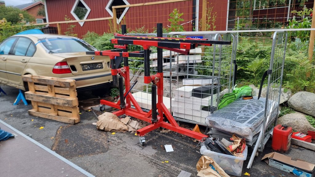 Hej! Har en karossvagga till salu. Höj och sänkbar för låga tag, går att snurra en bil med bara 220 i takhöjd.