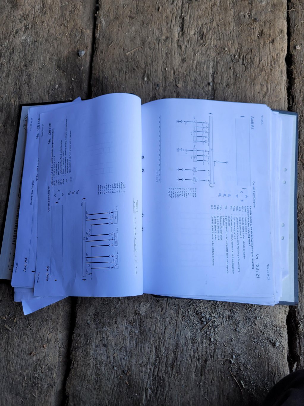 Till motorn följer också en pärm med utskrivna elscheman samt diverse anteckningar jag gjorde när jag satt denna i en Audi V8.