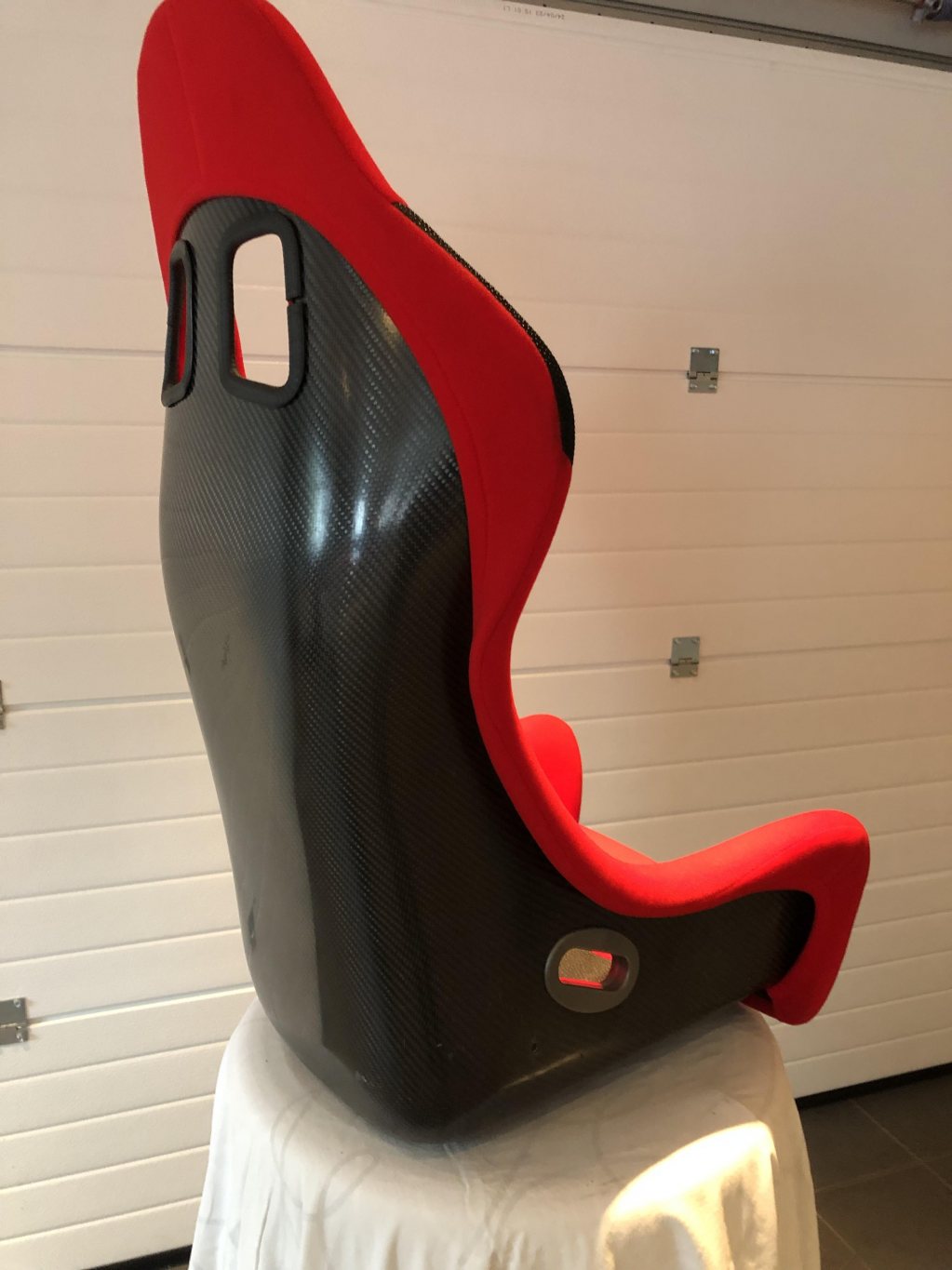 Sabelt Challenge Carbon racing stol- tidligere Ferrari 430 Challenge passasjer stol. Lite anvende- lagret i i mange år. Titan Carbonio materiale. Pris:13.000.-