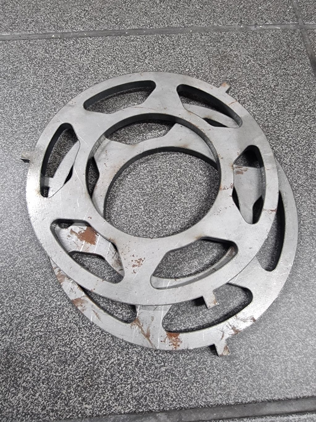 Säljer följande: - Laserskurna och bockade U för yttre infästningen för den som vill göra egna camberstag. Gjort för BMW E36 men passar kanske fler. Kan återkomma med mått vid intresse. Använde dessa själv när jag gjorde mina stag med rör och uniballs. Blev några över, 3 par. Pris 150kr/par. - Laserskuren triggerskiva med tre tänder. Använde när jag byggde hallgivar-trigger på min M30-motor för VEMS, kördes ihop med Honywell 1GT101-givare. Svetsades på remhjulet. Blev två över. 150kr/st. -Bakre bromsskivor till BMW E36, solida. Som nya, endast körda några gånger. 250kr för båda. ‐Ledlager Meyle kapslade av samma typ som används i BMWE46, kolla nummer eller så kan jag mäta. /Martin Israelsson 0730-379255