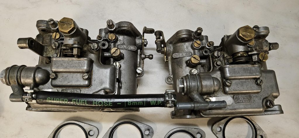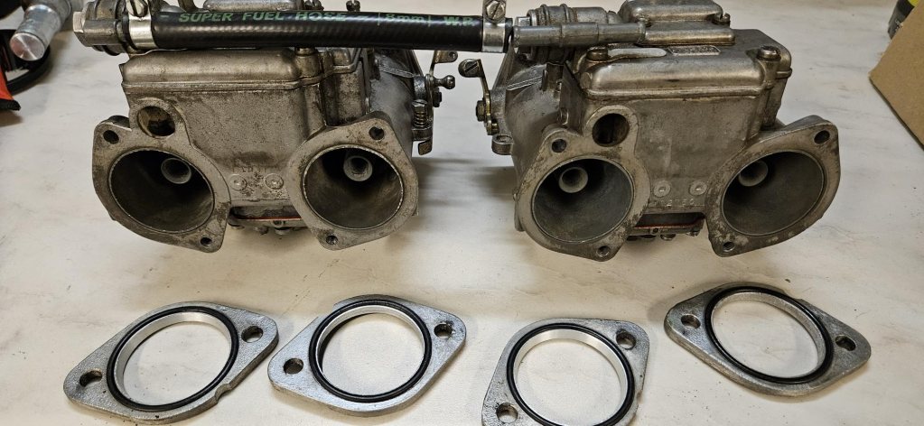 Har ett par Dellorto 48 DHLA som suttit på en Alfa Romeo 2.0, osäker på bestyckning och halsringar. De fungerade bra men har bytt till insprutning. Tätning mot insug följer med men o-ringar behöver bytas (båda sidor). Pris 5500 kr Väl mött!