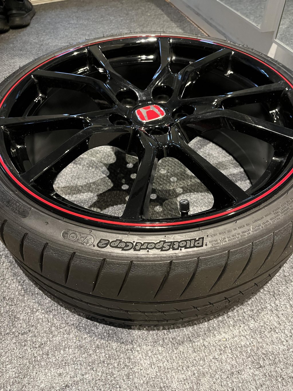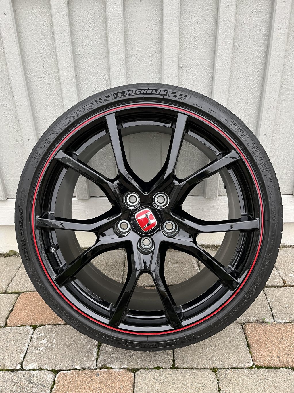Honda Type R FK8 20" originalfälgar i nyskick, monterade med Michelin Cup 2 (245/30-20) som inte har rullat många mil.