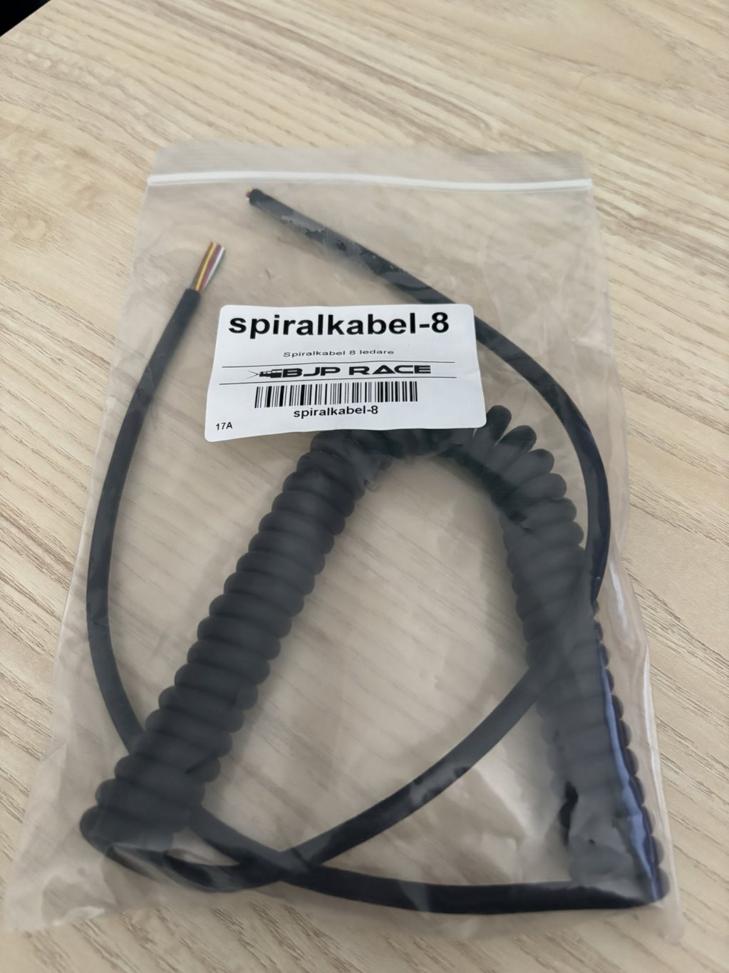 Eftersom jag handlar innan jag har planerat klart så har jag en spiralkabel från BJP Race över. Skalad ett par centimeter i ena änden annars helt oanvänd. https://bjprace.se/el-och-elektronik/kabel-och-kablage/kablage/spiralkabel-8-ledare/ 250 kr inkl. frakt eller 200 kr för er som kan ta er till Västerås.
