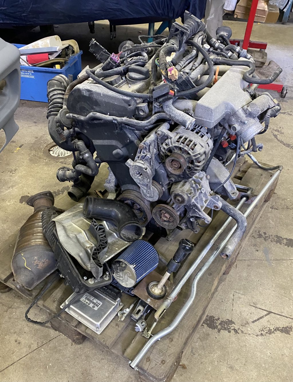 Ett komplett motor/låda paket säljes. Vw 1.8t APU (150hk går tydligen lätt att få up i 200-230) med 5 växlad låda från en 97-00 Passat. Följer med kablage, motorstyrning, gaspedal, spjällhus, turbo, koppling, katalysator+lambda, växelspak något moddad, startmotor. Detta paket satt i ett projekt som jag köpt så vet ej så mycket om det. Ser ok ut men dammigt. Ge mig ett bud då jag behöver bli av med paketet. Platsbrist! Finns i Älvängen strax norr om Göteborg. Pris: Bud!
