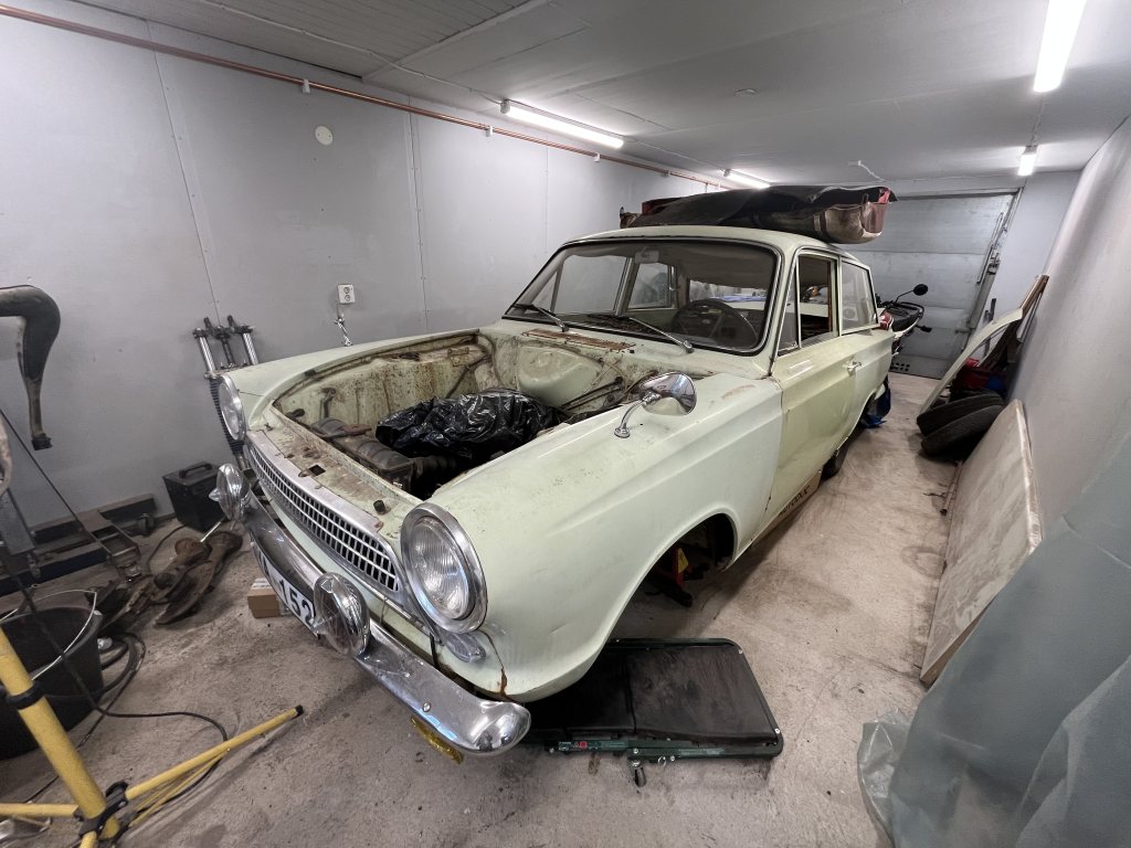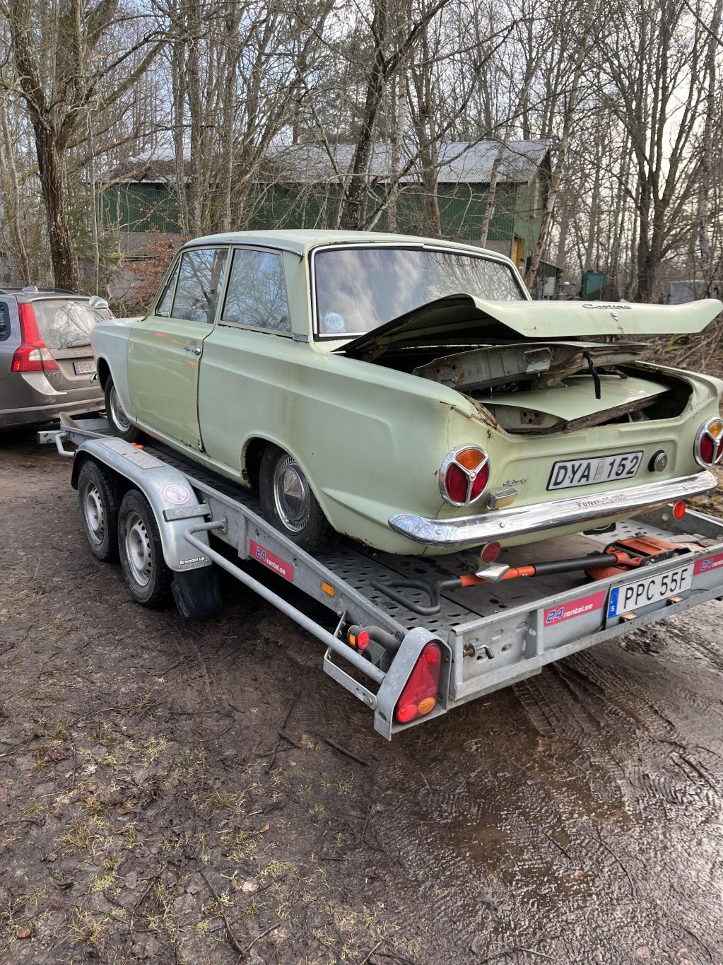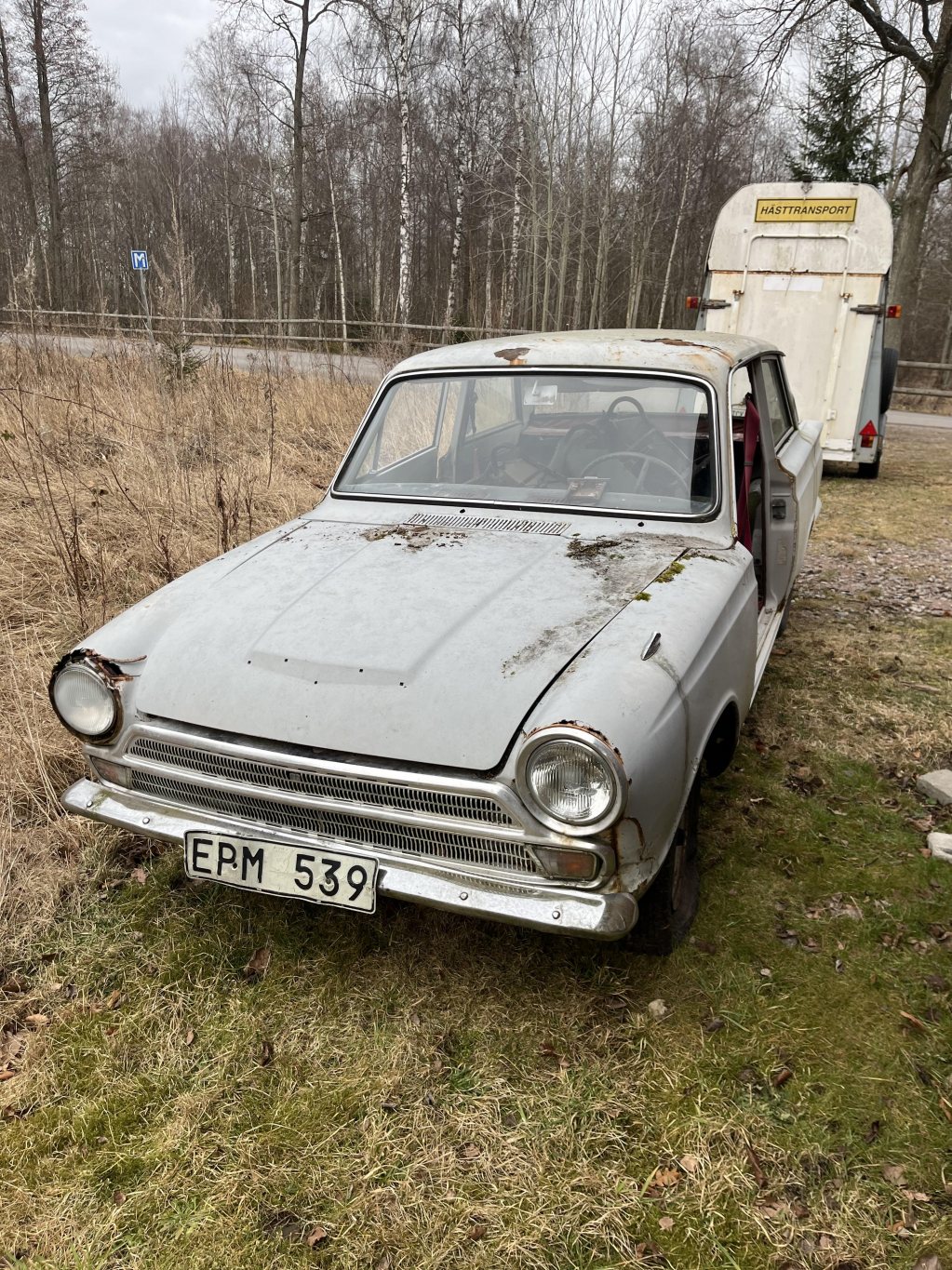 Hej. Har ju redan en projekttråd till min BMW 2002 som numera är lite pausad i en lada. Så tänkte jag gör en tråd om vad som händer med Cortinan som fick ta lite plats istället. Kortfattat så cyklade jag och min äldsta son förbi ett hus med massor bilar ståendes på nyårsafton förra året, åkte hem och luskade lite i vad som fanns på gården, la en lapp i brevlådan och 2 veckor senare så hade jag köpt inte bara en utom 2st Cortinor, en tidig 1963 och en lite senare 1966. Consul cortinan (ljusgrön) är besiktad för alltid och har brukats av gubben jag köpte den av tills för ett par år sen då den blev ståendes. 66an är en reservdelsbil och såldes och skrotades lite senare. Det är den ljusgröna Consul cortinan som detta projektet handlar om. Ford Cortina debuterade 1962 och detta är en 1963, dem hette Consul cortina fram tills 1964 då dem bara blev "Cortina" och har en lite annorlunda grill samt dekor på C-stolpen. Annars skiljer dem inte så jättemycket mot senare cortina. -Vad är planen? Jo att ha en trevlig bil att bruka på somrarna, men hålla det på en rimlig nivå, bmw 2002 projektet blev ju lite väl seriöst.. så denna kommer det inte kostas på något extra eller så, men den kommer bli roligare! det som ska göras innan våren 2026 är: *skivbromskonvertera fram. *byta bussningar, styrstag, dämpare fram *måla upp och snygga till framvagn. *rostlaga fjäderbenstorn vänster fram *rostlaga några balkar samt sandplåt bak *svetsa in bältesinfästningar *montera rullbälten *göra iordning inredningen lite. *byta till GT motor Låter som mycket jobb men det är inte så farligt ändå. Har påbörjat rostlagning och bältesinfästningar så det börjar ta sig!
