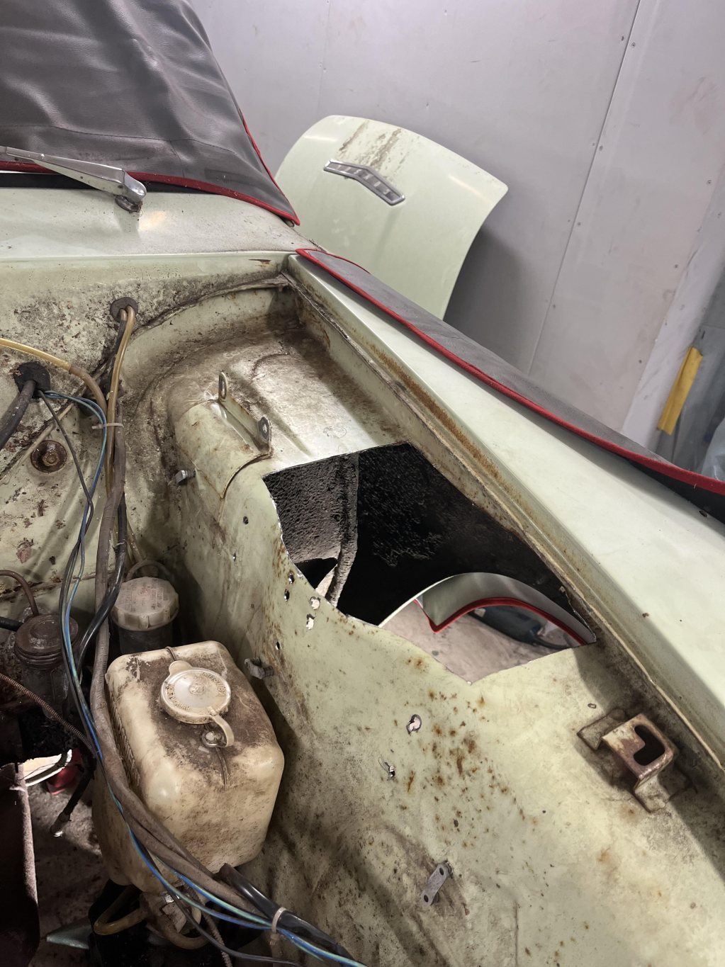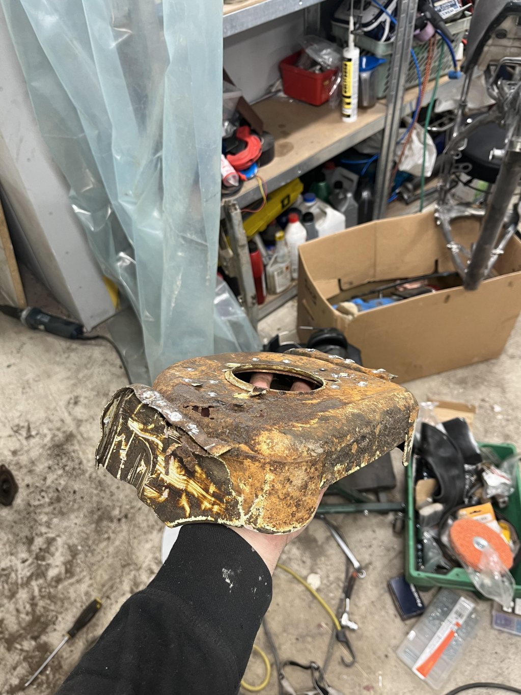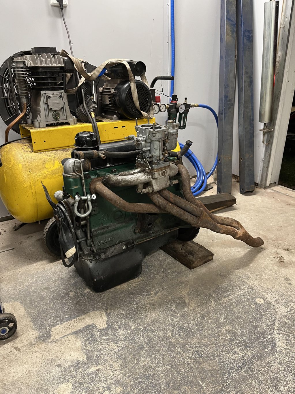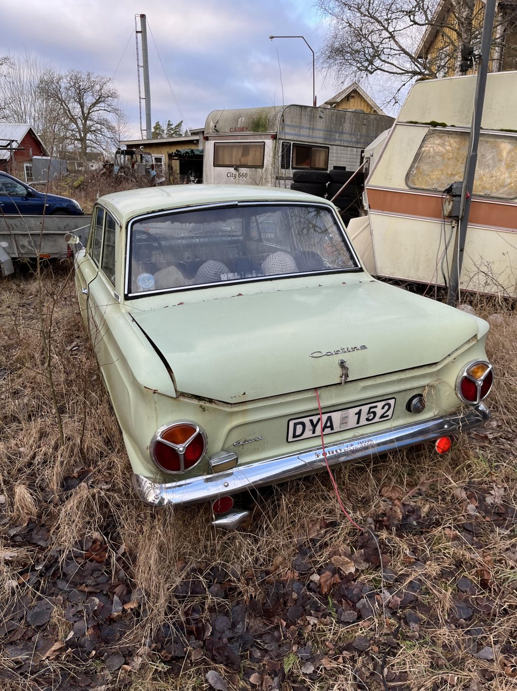 Hej. Har ju redan en projekttråd till min BMW 2002 som numera är lite pausad i en lada. Så tänkte jag gör en tråd om vad som händer med Cortinan som fick ta lite plats istället. Kortfattat så cyklade jag och min äldsta son förbi ett hus med massor bilar ståendes på nyårsafton förra året, åkte hem och luskade lite i vad som fanns på gården, la en lapp i brevlådan och 2 veckor senare så hade jag köpt inte bara en utom 2st Cortinor, en tidig 1963 och en lite senare 1966. Consul cortinan (ljusgrön) är besiktad för alltid och har brukats av gubben jag köpte den av tills för ett par år sen då den blev ståendes. 66an är en reservdelsbil och såldes och skrotades lite senare. Det är den ljusgröna Consul cortinan som detta projektet handlar om. Ford Cortina debuterade 1962 och detta är en 1963, dem hette Consul cortina fram tills 1964 då dem bara blev "Cortina" och har en lite annorlunda grill samt dekor på C-stolpen. Annars skiljer dem inte så jättemycket mot senare cortina. -Vad är planen? Jo att ha en trevlig bil att bruka på somrarna, men hålla det på en rimlig nivå, bmw 2002 projektet blev ju lite väl seriöst.. så denna kommer det inte kostas på något extra eller så, men den kommer bli roligare! det som ska göras innan våren 2026 är: *skivbromskonvertera fram. *byta bussningar, styrstag, dämpare fram *måla upp och snygga till framvagn. *rostlaga fjäderbenstorn vänster fram *rostlaga några balkar samt sandplåt bak *svetsa in bältesinfästningar *montera rullbälten *göra iordning inredningen lite. *byta till GT motor Låter som mycket jobb men det är inte så farligt ändå. Har påbörjat rostlagning och bältesinfästningar så det börjar ta sig!