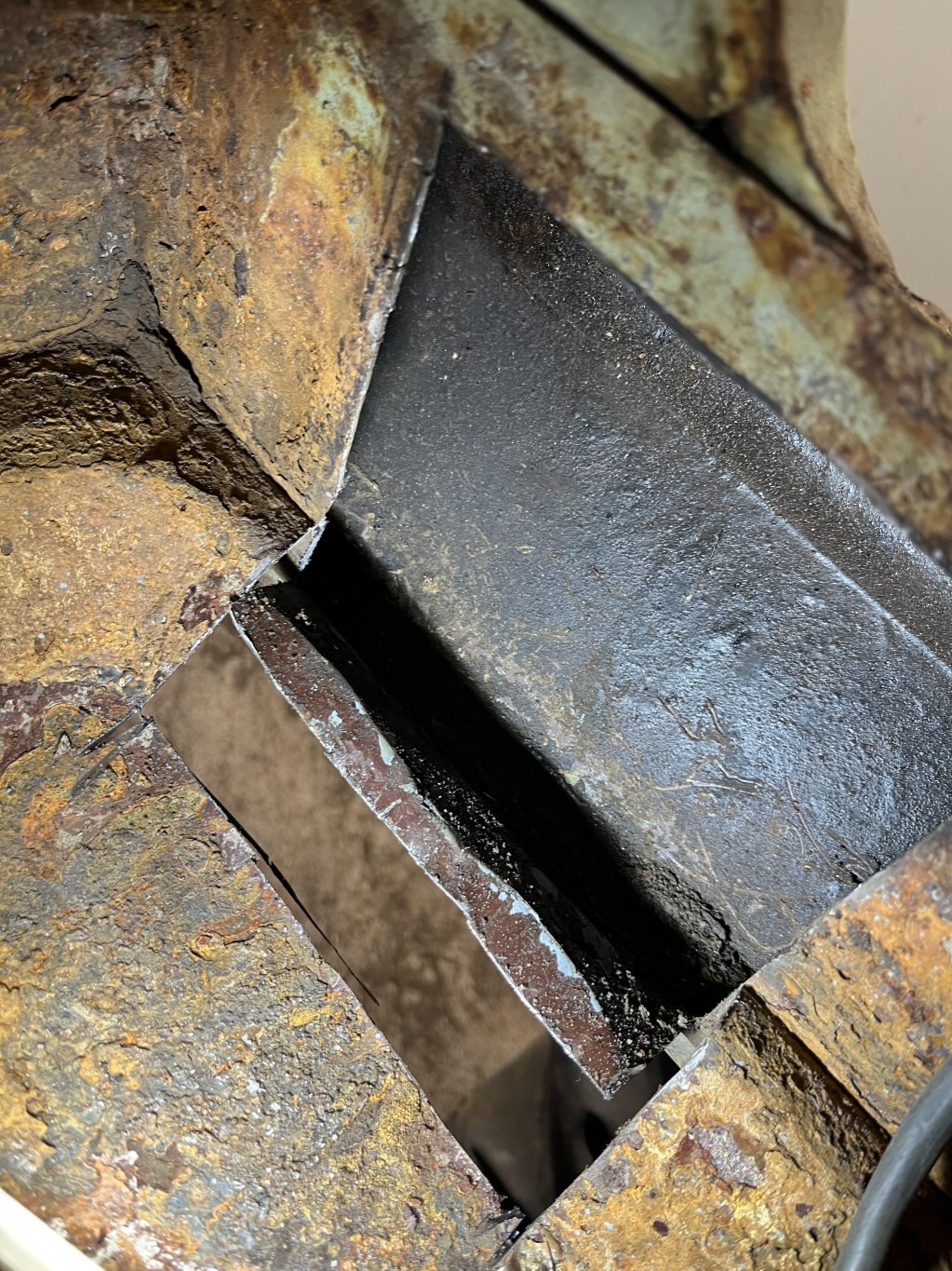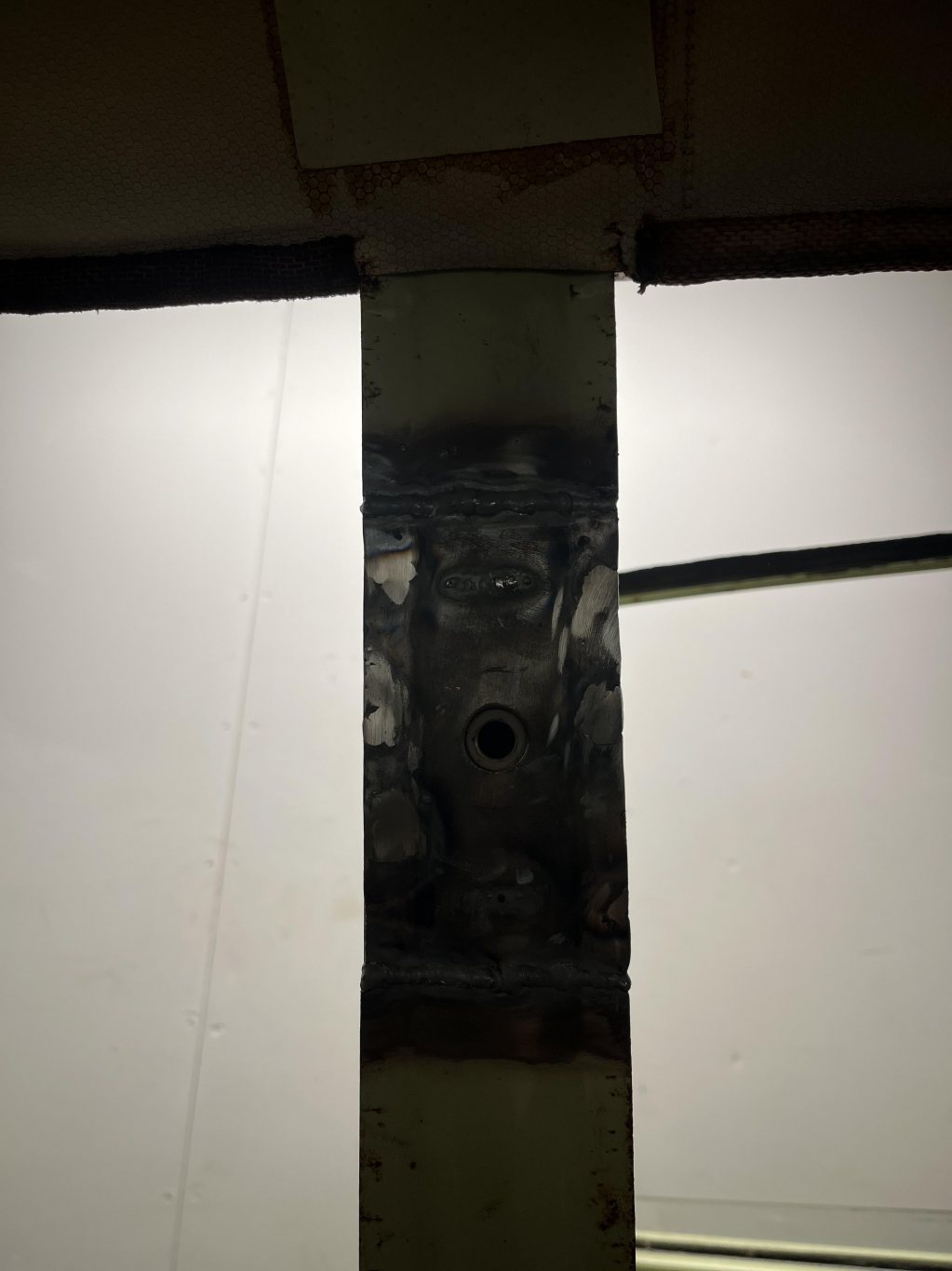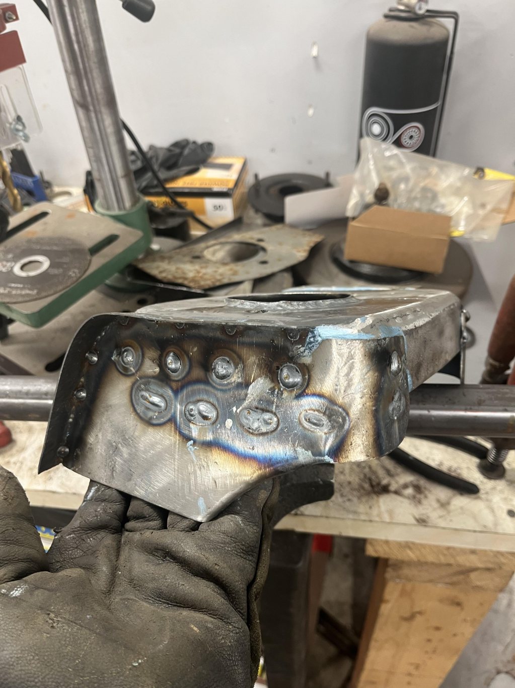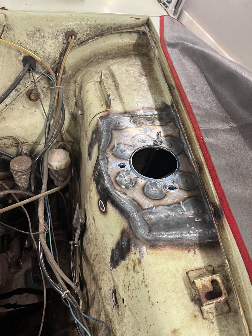 Sen helsvetsade jag fjäderbenstornet, och även övre bältesinfästningarna i B-stolpe. Sen påbörjade jag att demontera fjäderben för att blästra och lackera.