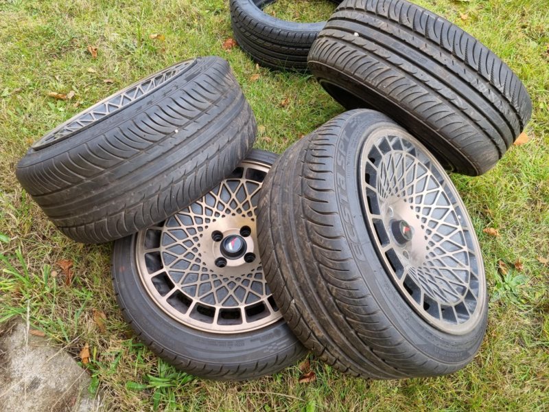 Fälgar Japan racing JR 14 2st 8x16 ET15 2st 9x16 ET10 Däck Kumho PS31 195 45 respektive 215 40 nästan nya. Jag körde dom på bmw e21, men sitter säkert fint på e30 eller något annat med lite tyskstuk