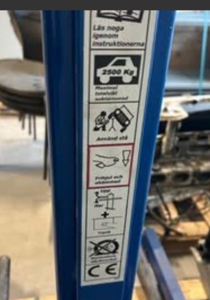 Det följer med 3 olika lyftarmar en liten och en stor som man lyfter i tröskeln på bilen och en som man kan lygta i enan hjulen. samt en lång pallbock som extra säkerhet.