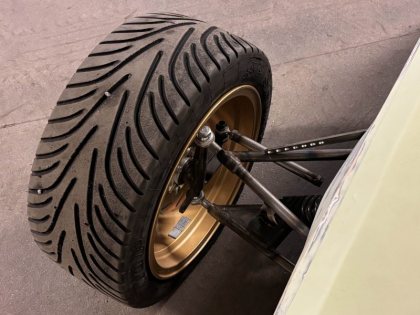 Nav och upright till framvagn bygger på delar från Autograss (engelsk buggy)