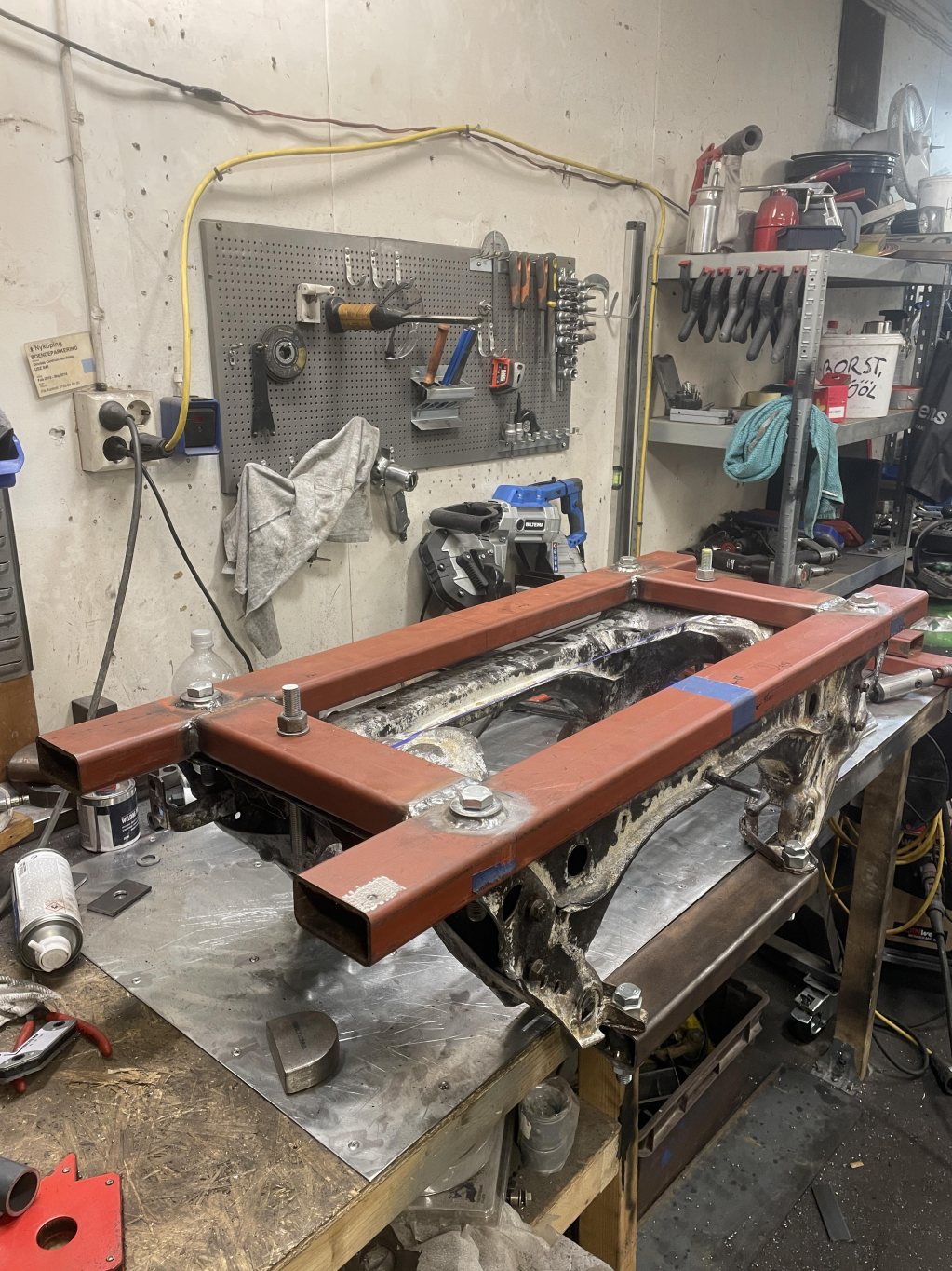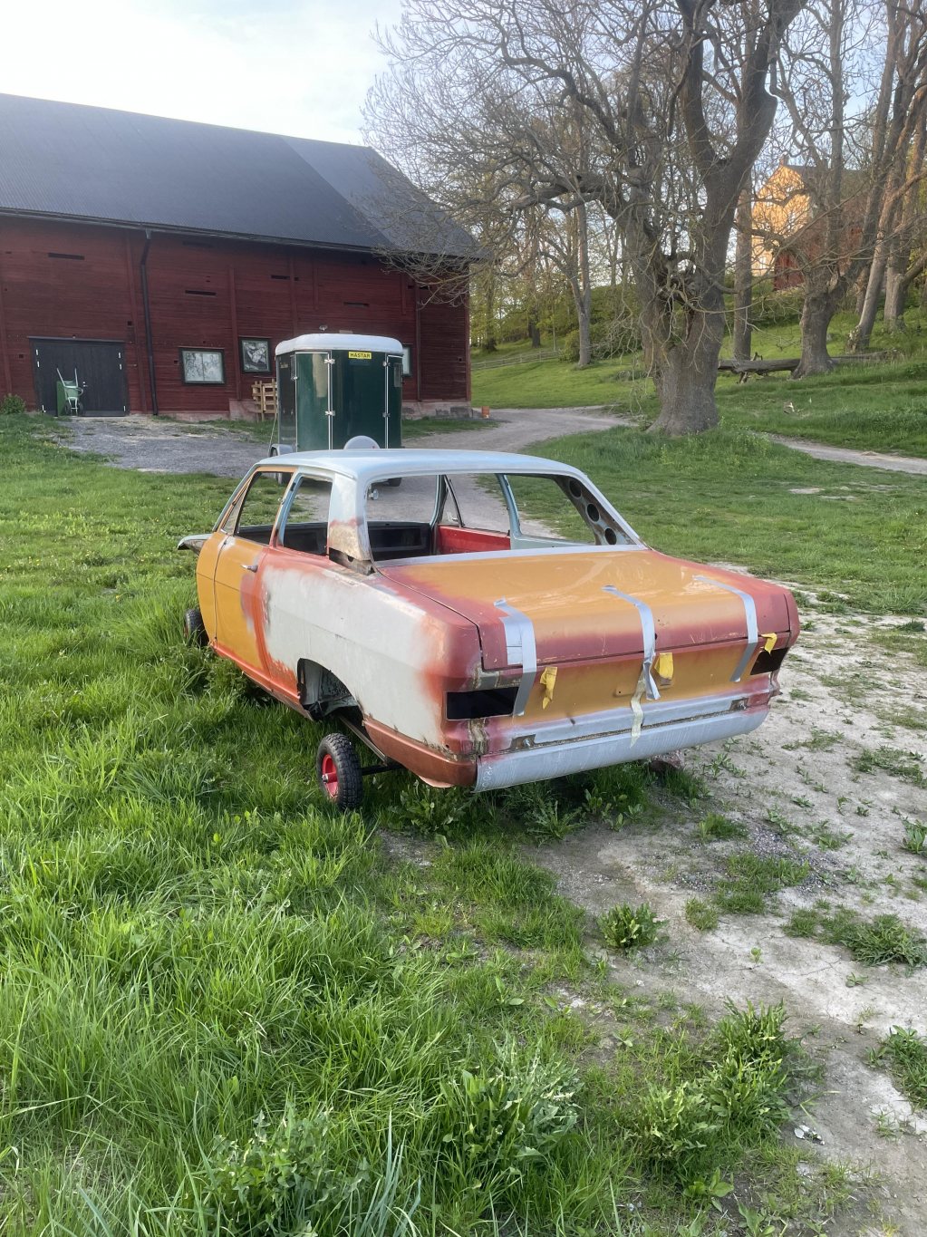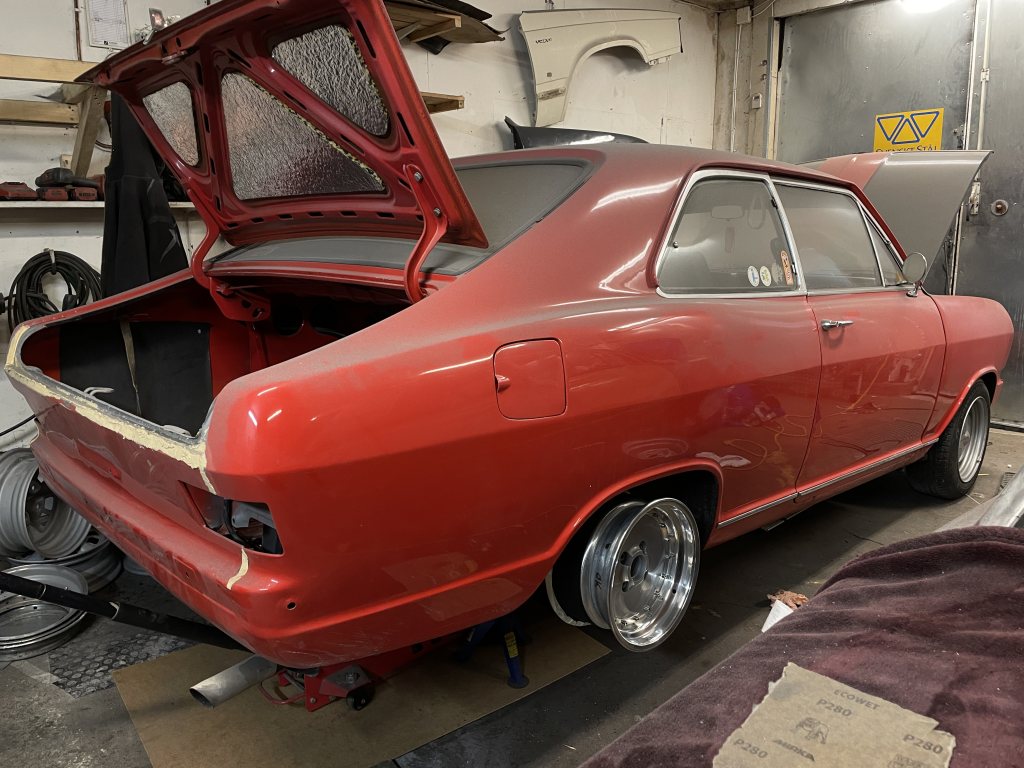 Då denna tråd nu är startad en bit in i bygget kommer jag lägga upp lite varje dag i mån av tid (livet är ju ändå fullt av annat tyvärr) tillsdess att vi är i fas med vad jag gör på bilen just nu. Eftersom jag byggt på ett "projekt" i nu hela 3 skepnader har man lärt sig på vägen hur man bygger, vad som behöver tas i beaktning etc. I verkligheten är detta den tredje karossen som nu byggs och har rätta förutsättningarna. Kaross 1 var realistiskt en trial-and-error, spenderade närmare 1 år att rostlaga de typiskt dåliga ställena på kadetter; A-stolpar, sparklådor, ram, golv. Tråkiga var att när man väl kommit genom hela frontpartiet och trösklar, så dök det mer och mer dåliga lagningar. Visade sig att jag kört bilen från norra dalarna till södra sörmland med ett 3cm tjockt lager av spackel, popnitad aluminiumplåt & asfaltsmatta som enda "struktur" av ram att hålla bilen från att vika sig på mitten, hur det gick undrar jag än idag. Närkag kommit till bakrehalvan av golvet där förarstolens rygg möter tvärbalken, fanns det _ingenting_ att svetsa i. Utöver det, flytande tektyl inblåst i hink-mängderi varje vrå, det var omöjligt att göra framstegutanatt det gav mer problemoch lagningarna blev skit. Fivk nys på en tom kaross i karlstad, värmland. Orörd, ovetsad, 3000:-. Kände det vägde tyngre stt börja på en ny kula. Ni ver säkert känslan jag hade, för när spackelkakorna på alla paneler ja reparerade var mellan 5-15mm på varje punkt jag tog bort lacken, blev det för mycket framtida tvång att lösa gentemot vad jag hade för kunskaper och verktyg att kunna rikta tunnplåt, speciellt när kadettens kaross har radier och linjer på stora ytor. Så, kaross 2 inhandlades. Det var som natt och dag. Krossen var helt orörd, vilket var bra utgångspunkt när man inte hade samma kunskaper för plåt jobb som man har idag. Här gick det undan kunde återanvända mycket av plåten som jag reparerade på kaross 1, tog färdiga sektioner och flyttade över, frid och fröjd. Jävla massa svetsande bara. Kanon faktiskt säga att det var på kaross två som jag på riktigt lärde mig att svetsa bilplåt och även knacka / valsa till passbitar för hand. Denna kaross fick ungefär ett år också. Gick skitbra. Gjorde framsteg fort. Hade ju mycket delar ifrån första karossen för det fanns ändå bra framskärmar dörrar och huv samt diverse andra plåt detaljer som kaross två behövde . Men, här kommer det tråkiga med att lära sig saker allteftersom. Kom så pass långt att bilen såg tämligen hel ut i det här läget är fortfarande min utgångspunkt att jag ska använda 2,4 liters motor av CIH typ alltså opels största motor som passar mellan många modeller ifrån liknande tid. Hade ju fått tag i den stora framvagnen den stora bakaxeln och stora växellådan växellåda. Tunneln var även ifrån den större modellen så förutsättningen var skitbra. Humöret var på topp. Men. Stort jävla men. När väl framskärmar, front, huv, bak skärmar satt på plats så passade inte längre dörrarna. Ingen utav dörrarna.