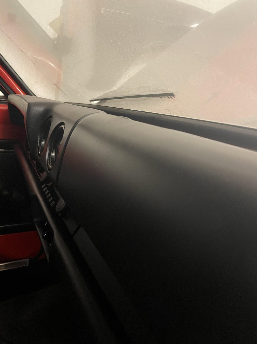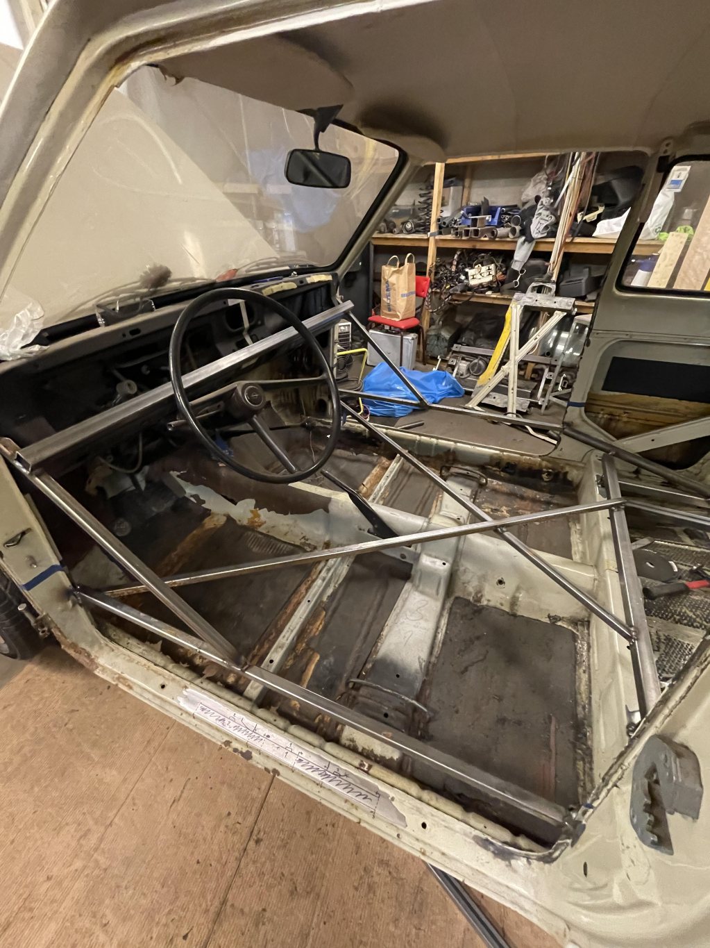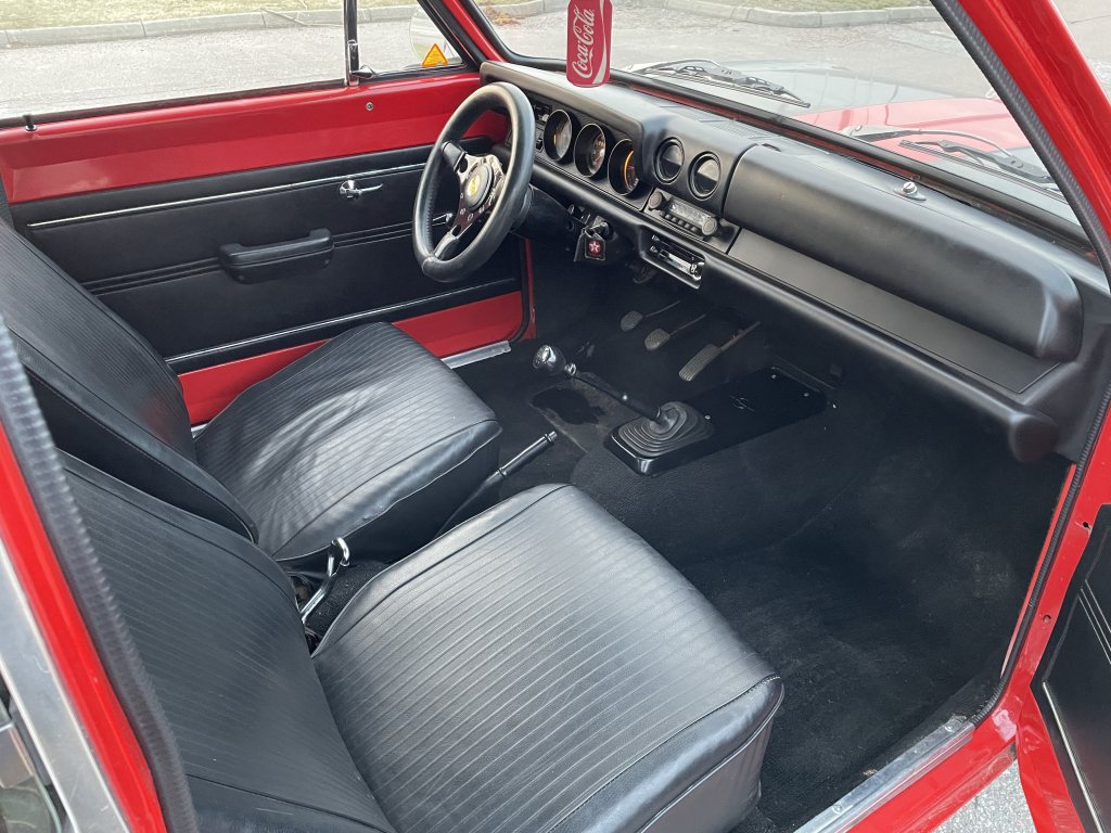 Alla reparationer som gjorts i golvet hade skapat så pass mycket spänningar mellan A och B stolpen att främre övre hörnet närmast rutan av dörr gången dragit ihop sig närmare en och en halv centimeter mot nedre bakre hörnet, så när dörren väl hängde på gångjärnen var det så tajt att låset slog i bakskärmen och det fanns inte ett uns av möjlighet att kunna reparera det här utan att i princip kapa rakt igenom hela bottenplattan och förlänga. Alternativet var att pröva hitta spänningar, men mängden svets som gjorts skulle vara att hitta en nål i en höstack. Här tappade jag lite hoppet på projektet när det blev såna jävla motgångar. Ni vet nog själva hur det kan vara i perioder när man bygger bil med motivationen. Andra saker kom emellan i mitt fall en kadett med god potential och mycket delar. Det var bara yttre plåt jobb som behövdes, utöver renovering av drivlina, lack och så vidare. Så här blev det en mellanlandning för projektet i brist på motivation. Renoverade den nya kadetten som i sin tur fick alla bra delar jag skulle haft mitt eget projekt. Inredningen gick helt i svart, sportratt från rätt årtionde, tillvalsstolar med nackstöd, fancy va?