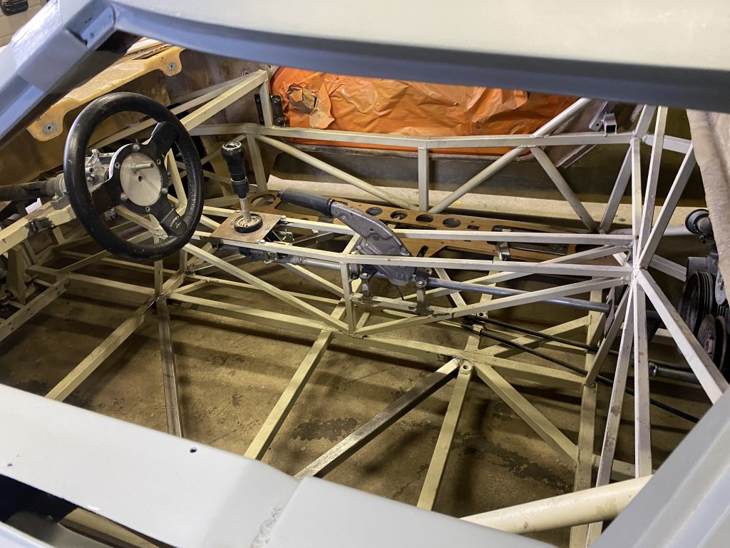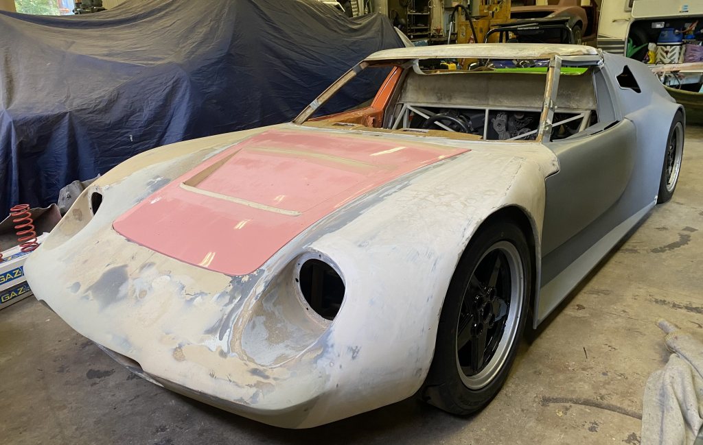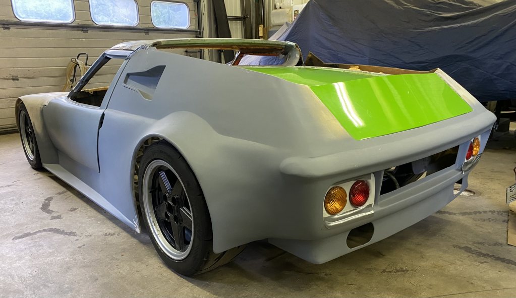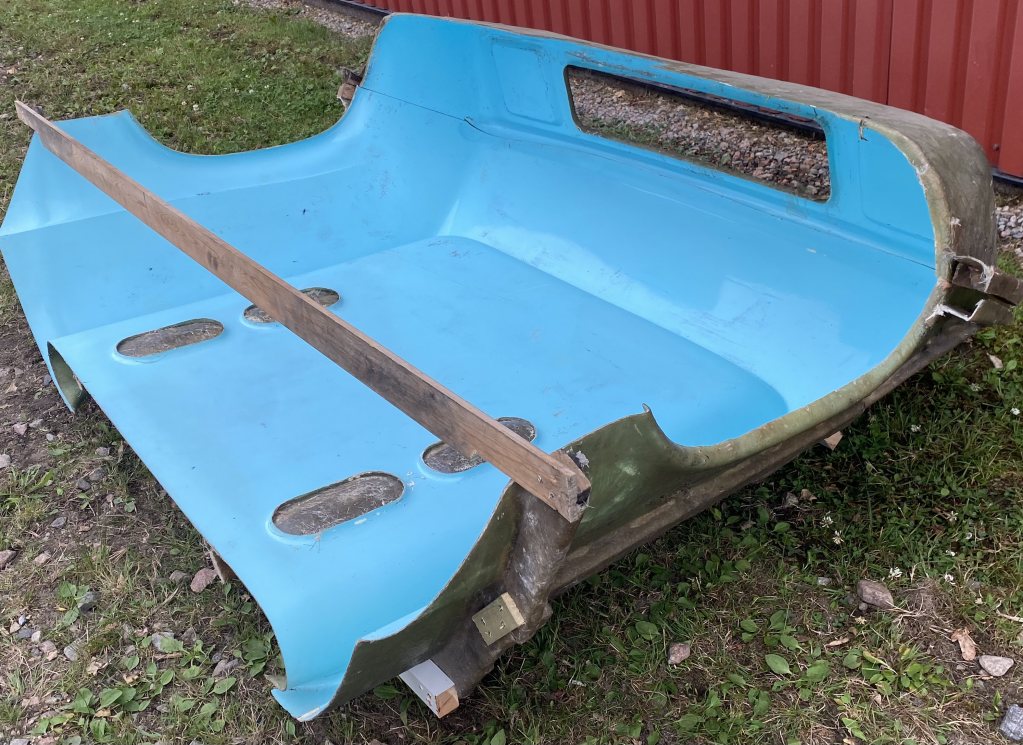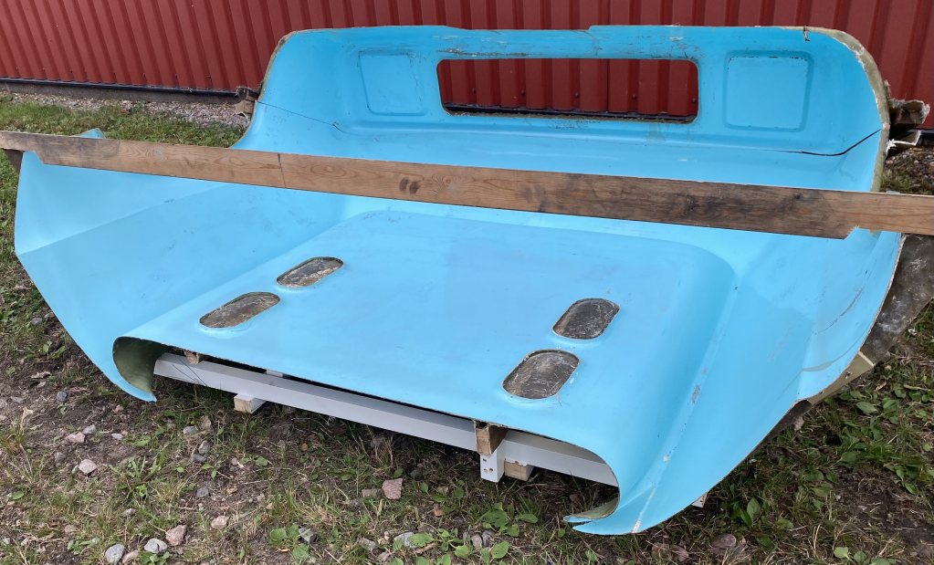 Denna karossen har levt ett brokigt liv. En tidigare ägare kapade den i tre delar för att göra en dragracingbil av den. Då kapade man av övre delarna på sidorna bak för att efterlikna en senare twincam Europa. Min tanke är att göra front och bakdel i kolfiber för att få ner vikten. Jag har en gjutform för en bakdel i ett stycke...får se hur det slutar.