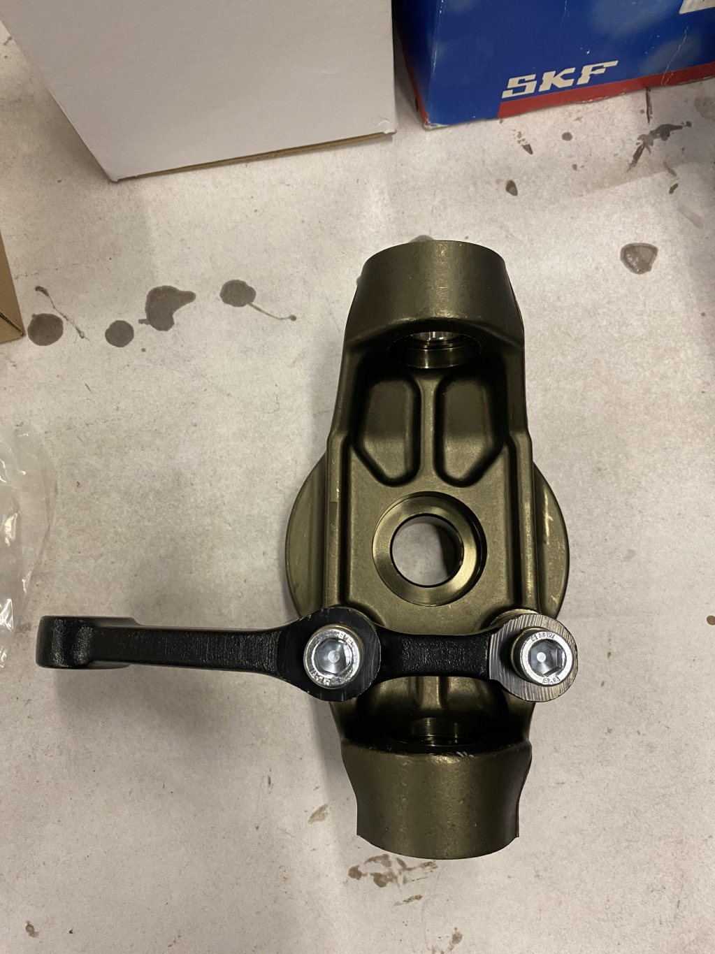 Hjulupphängningar fram är byggda för spindel från taunus/Cortina/kadett. Så jag byter till Rally Designs aluminium spindel men byter nav till skf vkba 3585 ( ca 10mm mindre styrradie med detta nav istället för vkba 1481) så får man ner styrradien på en bra nivå. Adaptrar till detta gjorda av Anders " Kinasvarv" här på Rejsa!!! Tack!