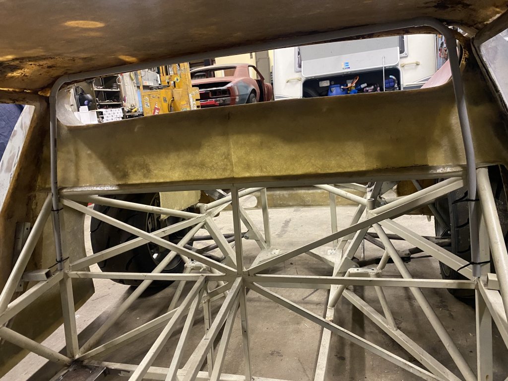 Skall komplettera ramen med bur. Tanken är att svetsa fast buren på hyllor på den befintliga ramen typ som man gör på super seven bilar. Frågan är om det blir godkänt för racing typ spvm? Tanken är att kapa bort den övre delen på ramen och ersätta med burrör likt det gråa plaströret. Skall det vara 45x2.5 rör eller kan man köra 40x2?