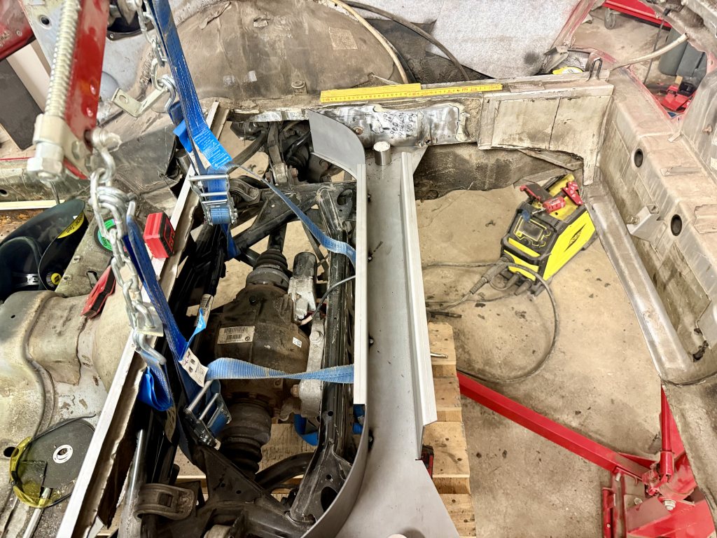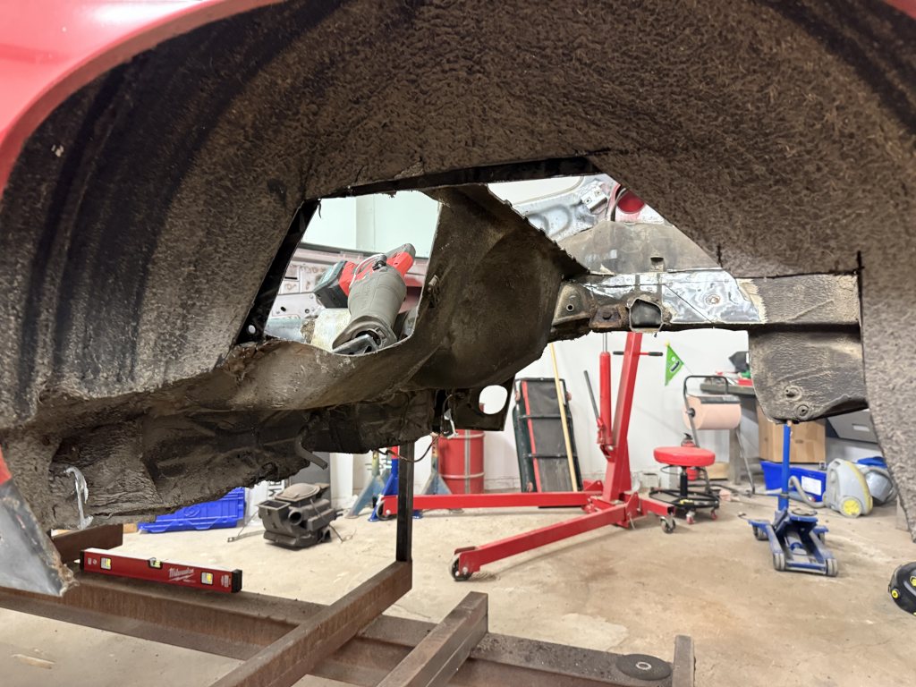 Bak fick jag hjälp, att tillverka nya infästningar som jag sedan har svetsat fast i bilen.