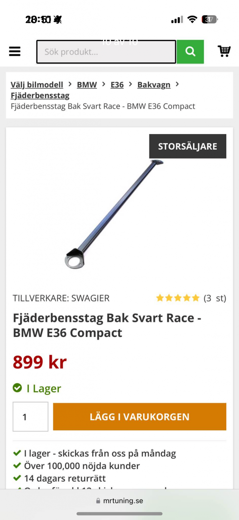 Bild 1: Gaz GOLD coilover kit till E36 compact. Ställbart i höjd och hårdhet. Ställbar topplagring fram. Powerflex gul topplagring bak. Nypris på detta kit utan frakt & tullavgift är 19 642kr. Säljes nu för 12 00kr. Framtaget för trackdays & race https://gazcoilovers.com/bmw-e36-com Bild 2: Kylare till E36 och andra modeller. Ridex 470R0011. Helt nytt 700kr Bild 3: Bmw E36 M3 M frontläpp 500kr Bild 4: Bmw e36 domkraftsadapter 300kr Bild 5 & 6: Sportratt med djupare nav 800kr Bild 7 & 8: Kenwood Stereo KMM-BT309 Usb, aux, bluetooth & handsfree. Kort chassi 700kr Bild 9: NGK BKR6EK, 6st helt nya 350kr Bild 10: Fjäderbensstag bak E36 compact race. 600kr Hämtas i Göteborg och betalas endast med Swish! Smsa till 0723020296 vid intresse Taggar: Bmw, E36, E30, trackday, race, 323ti