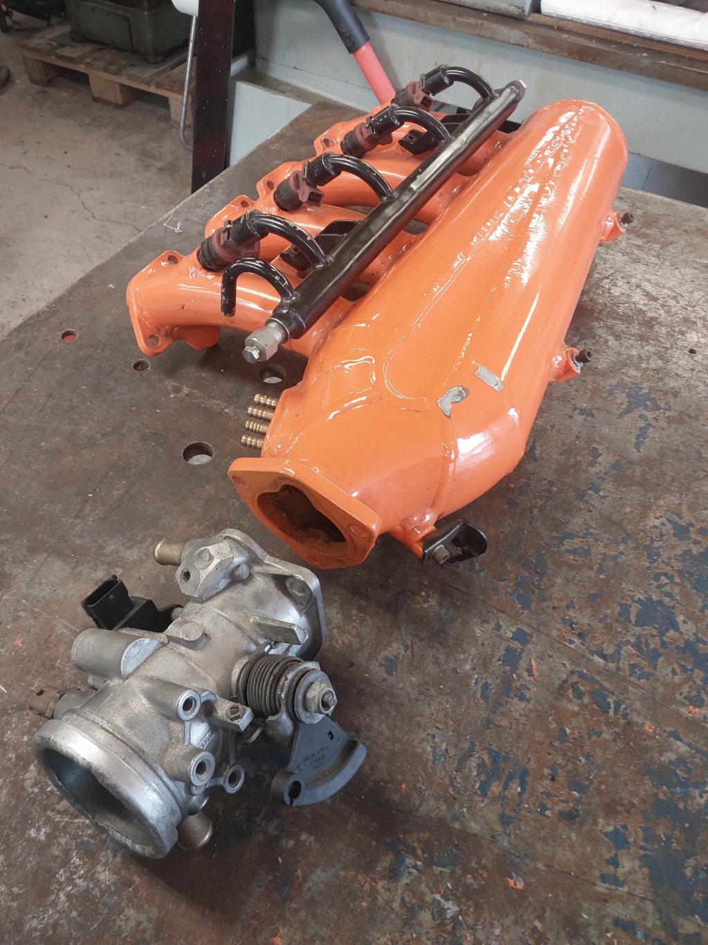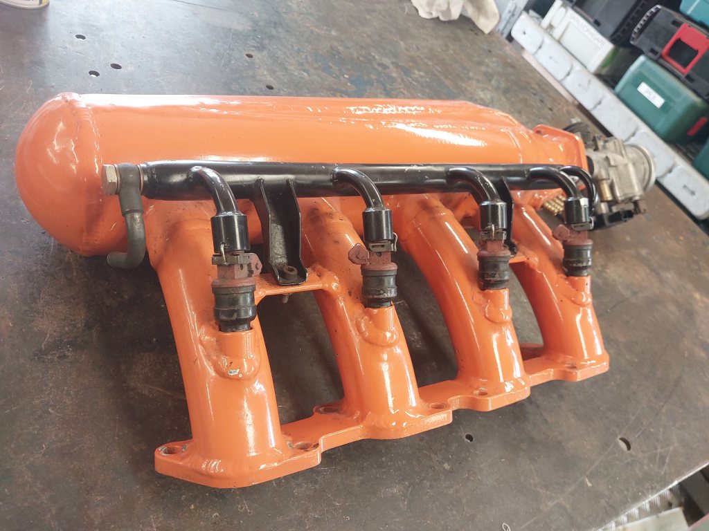 Hemmabyggt plenum för b230 med fullradietrattar, anpassat för SAABs motorstyrning och har därför ett SAAB spjällhus och någon form av dito spridare. Har suttit i en Locost Seven och är "lågbyggd" för att passa under en snäv motorhuv. 500kr