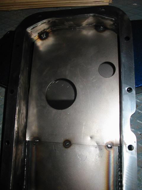Hej Försöker lägga upp några bilder på min X-flow sump Spalterna i kanten har nog uppstått då någon tagit bort plåten och sen slarvat lite vid svetsningen Rymmer knappt 4 lite inkl litet filter. Även sugröret är moddat så att det suger mitt i sumpen. Det lilla hålet är avsett för oljestickan