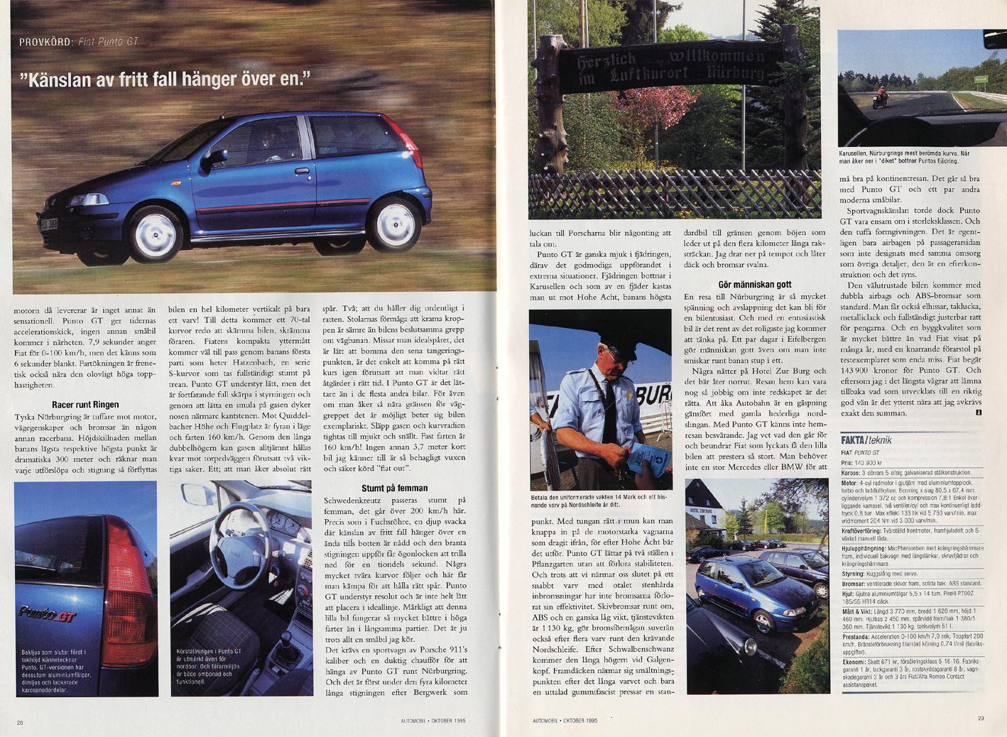 Tjena! Tänker skriva lite om min Punto (bilder kommer). Här är iallafall lite info från en provkörning av Automobil: http://sfk.ibk.se/depa/showfile.php?carpic_no=1130&type=picture http://sfk.ibk.se/depa/showfile.php?carpic_no=1131&type=picture . Verkar ha blivit duktigt inkörd