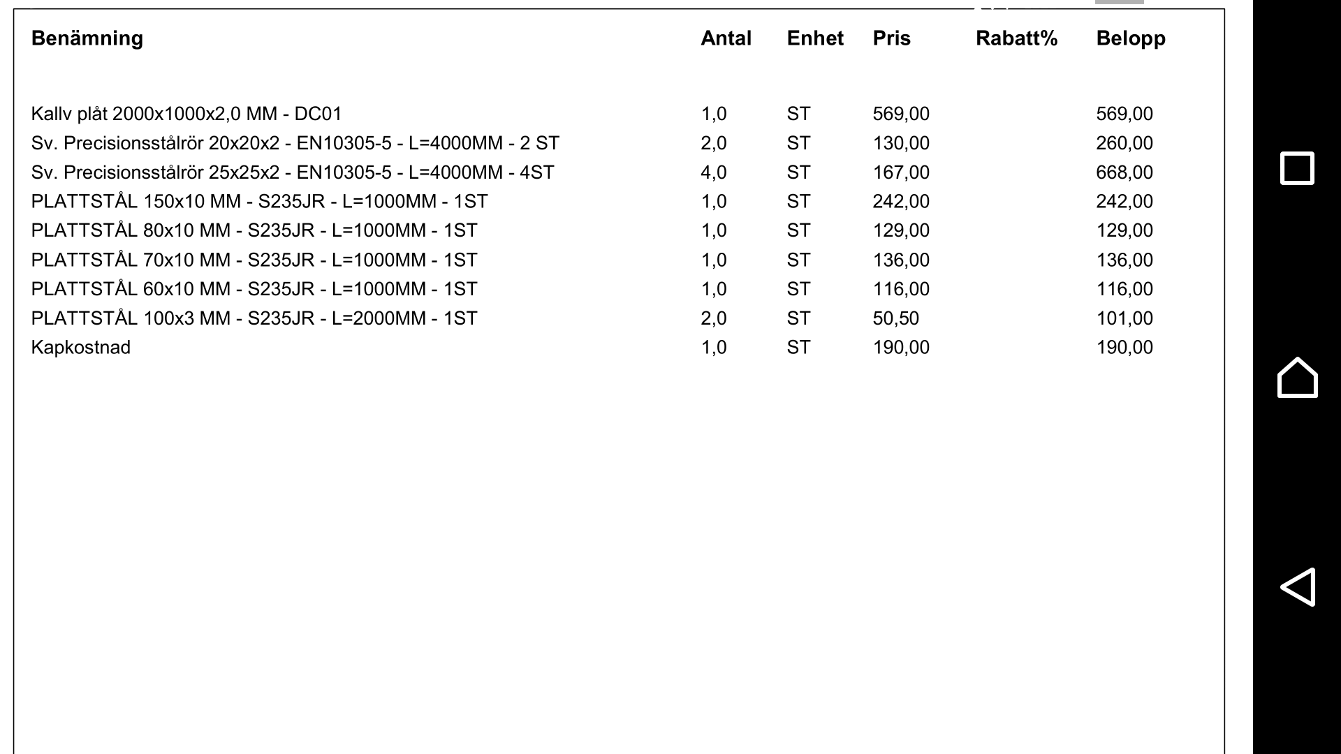Nån som vet vad det är för moms på stål? (lyckas inte googla det.) |