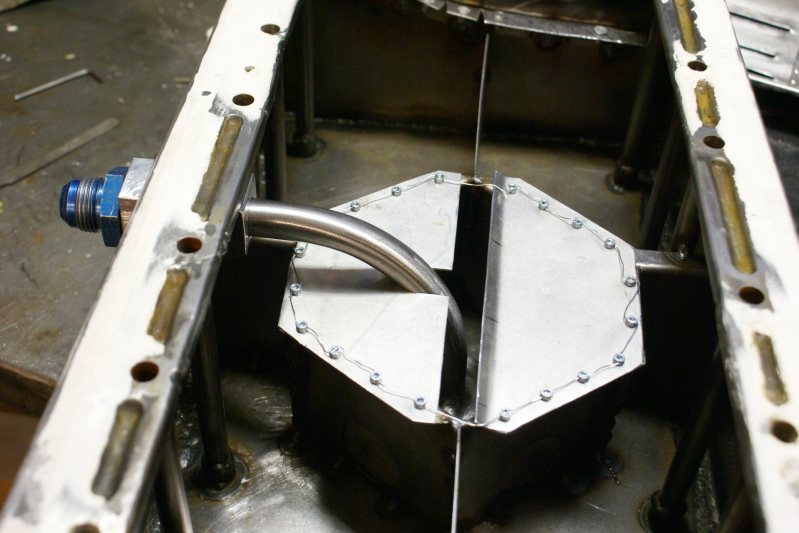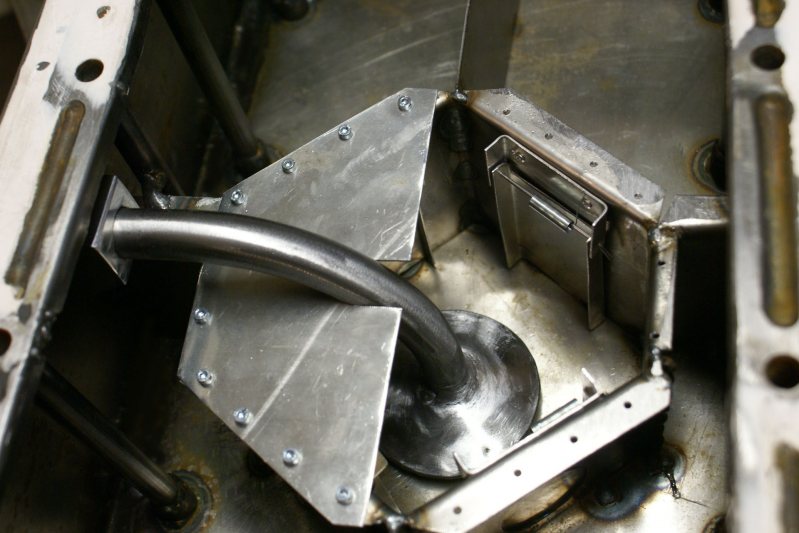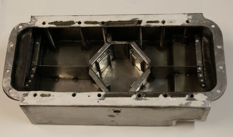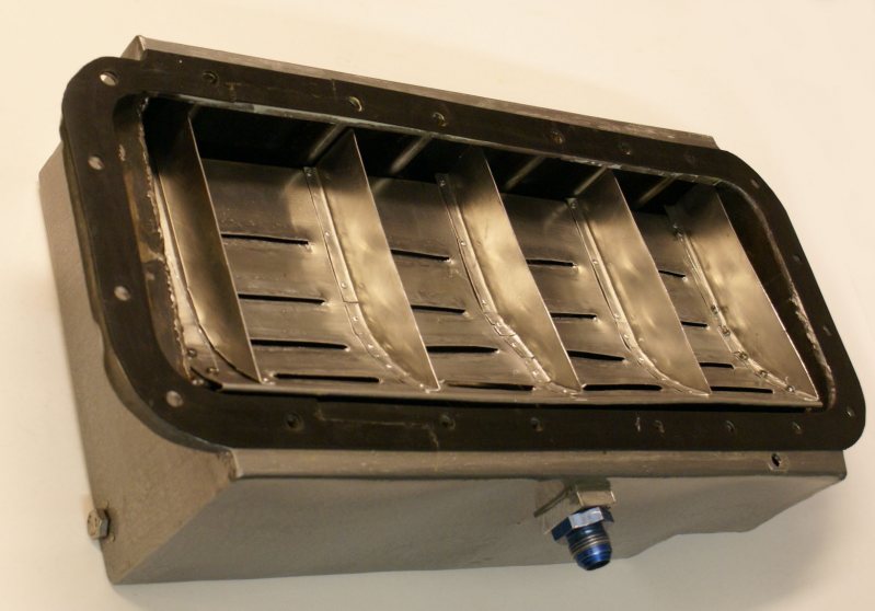Bafflingen med fälldörrar för oljan, små fjädrar håller dörrarna lätt stängda vid stillastående.