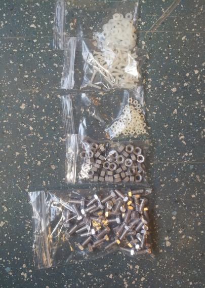 bult/skruv/mtter (gärna i M4 / M5 i plast (både bult + mutter då)