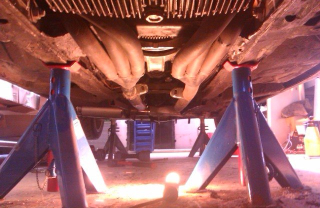 Funderingarna kretsar ändå till att gå ner ett steg & montera 2,5" halvvägs under bilen till slutburken för att minska resonansen än mer + ha ett kors. Avgaserna kallnar & volymen med den så ett 3" är lite overkill även på min tuffa bil