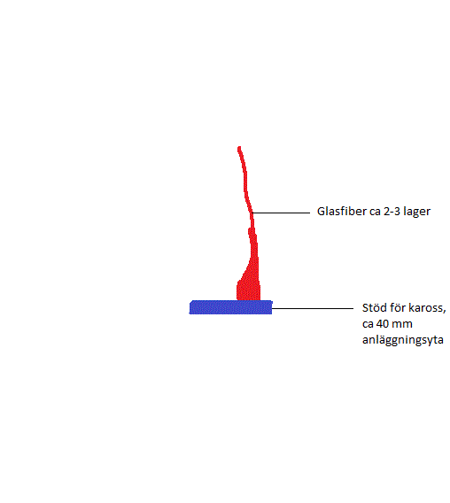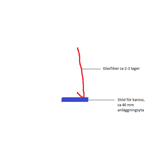 Tanken var att limma alu. förstärkning där karossen bildar ett V då det inte håller i nuvarande utförande. Funderar nu om det kanske är bättre ide att fylla ut V:t och gör större anläggningsyta just där det ligger an mot stödet?