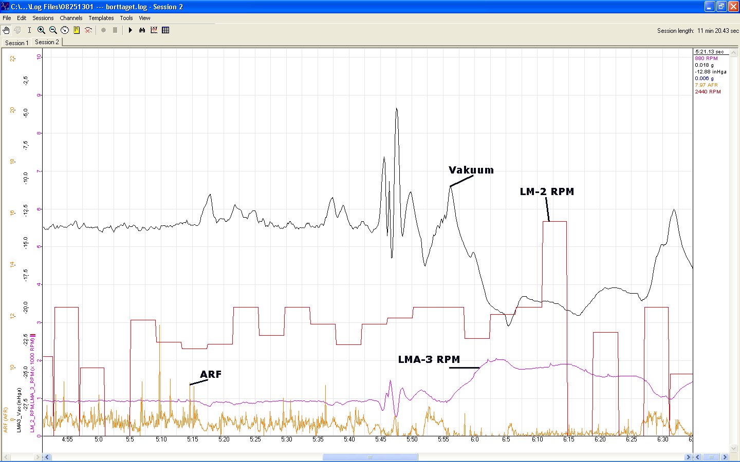 Jag har köpt Innovate Motorsports LM-2 och LMA-3, jag behöva er hjälp. 1. Varför visar ARF värdet så "kantigt" fladdrande värde? 2. Vad ska jag göra för att få en mjukare linje? 3. Är det nått fel eller går motorn så här fett? 4. Jag har tagit rpm signalen från samma ställe men LM-2 rpm och LMA-3 rpm visar inte samma värden? 5. Varför och vad ska jag göra för att få rätt rpm? 6. Varför visar LM-2 rpm så "kantigt" fladdrande värde? 7. Vad ska jag göra för att få det rätt? 8. Varför visas OBD rpm? det är inte på enligt LM-2 och LM Programmer. Anders _________________ Tackar för all hjälp! Anders Hellberg De Tomaso Pantera GR3 -75 Ford Capri 2.0 -77 Volvo PV 544 -58 Tack för hjälpen! www.mrtuning.se |