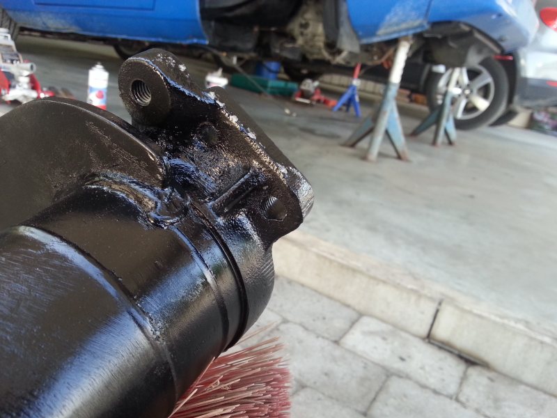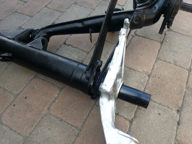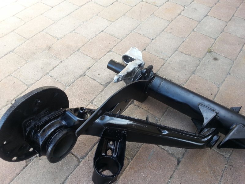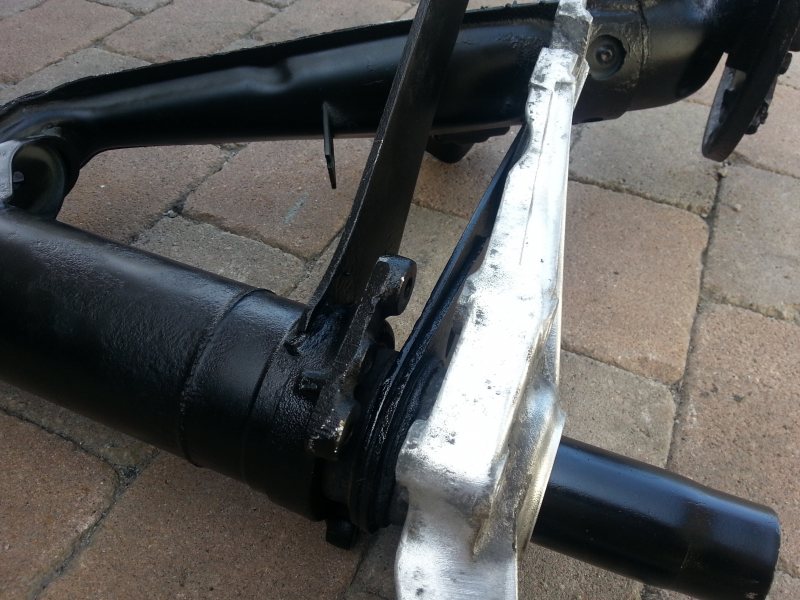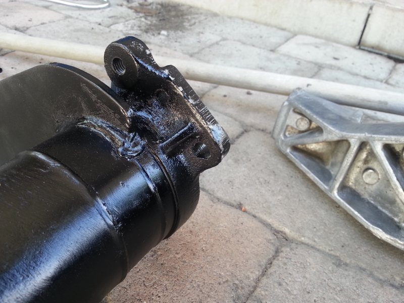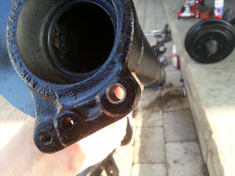 Hej och hå. Det går framåt. Väntar bara på bussningar och stötdämpare så kan jag börja montera bak igen. Eller sa jag "bara bussningar"? Måste fixa annat också som jag fick problem med när jag tog isär allt. Hur ska jag enklast fixa gänga här igen? Det finns ju plats bakom för att svetsa på en mutter och sedan ha en längre bult, men lika bra att få en vanlig gänga istället nu när det är så lätt att komma åt. Hålet är 10mm och det ska vara M10. Ska jag fylla igen hålet, köpa http://www.jula.se/gangreparationsse