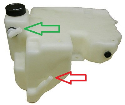Han skriver att applikationen är mittmotor med frontkylare, därför krävs separat luftnippel på kylaren. Jag tycker också att det är viktigt att luftfickor inte kan bildas någon annanstans än i kärlet, därför tycker jag att kärlet skall monteras som högsta punkt permanent.