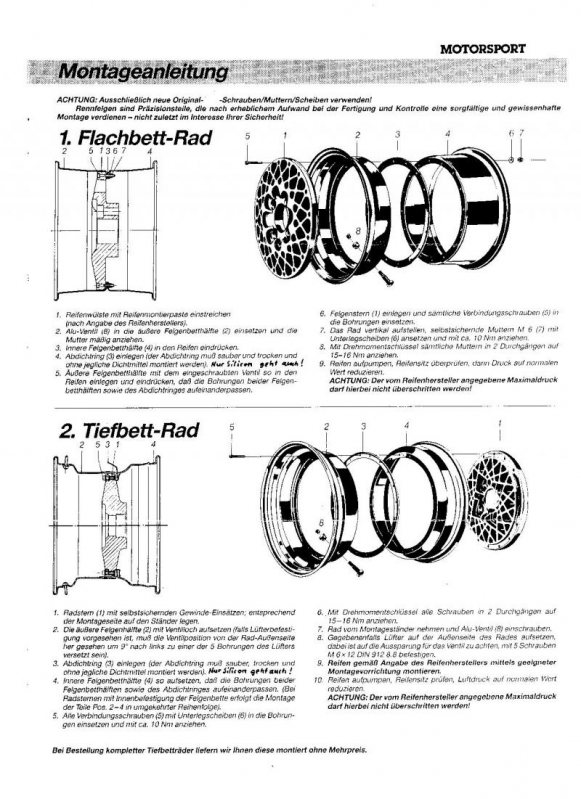 *Det behövs ej någon tätningsmassa utöver tätningsringarna, förutsättningen är att tätningsringarna är fräscha. *Bultarna skall dras med 17Nm i kryss och sedan varmköras och efter dras med 17Nm igen. Men envis som jag är så lyckades jag hitta ett gammalt dok. på nätet till mina fälgar ( BBS E30 ) och det skilde lite på momentet. Kan dela med mig av det, om det är fler som söker information om gamla BBS